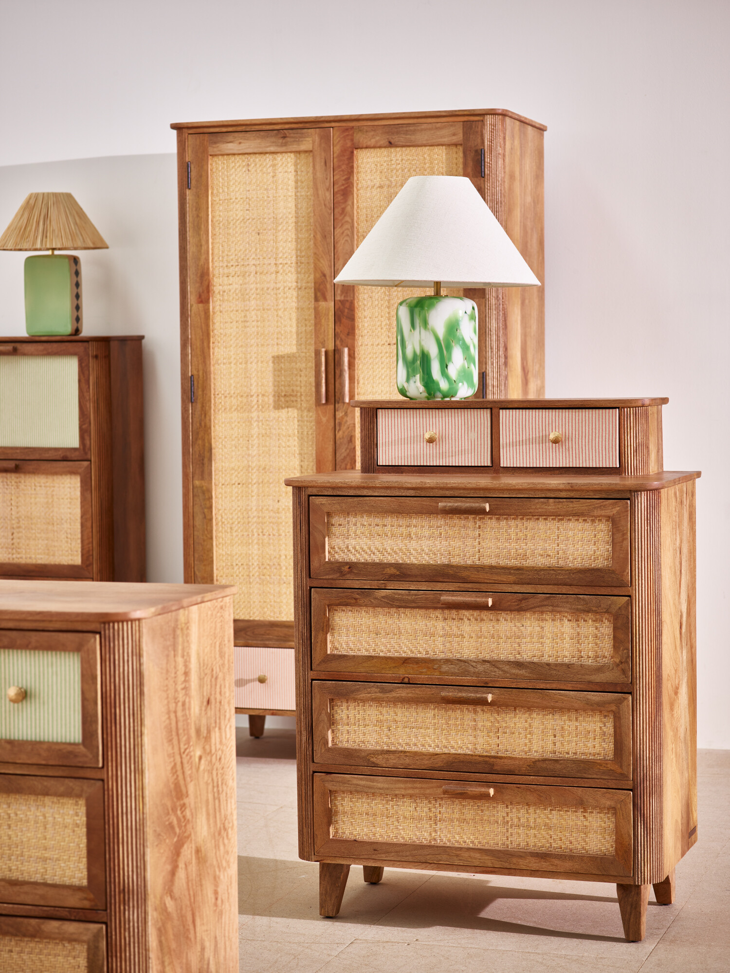 Tinta Pink Stripe Mango Wood Tallboy Chest of Drawers