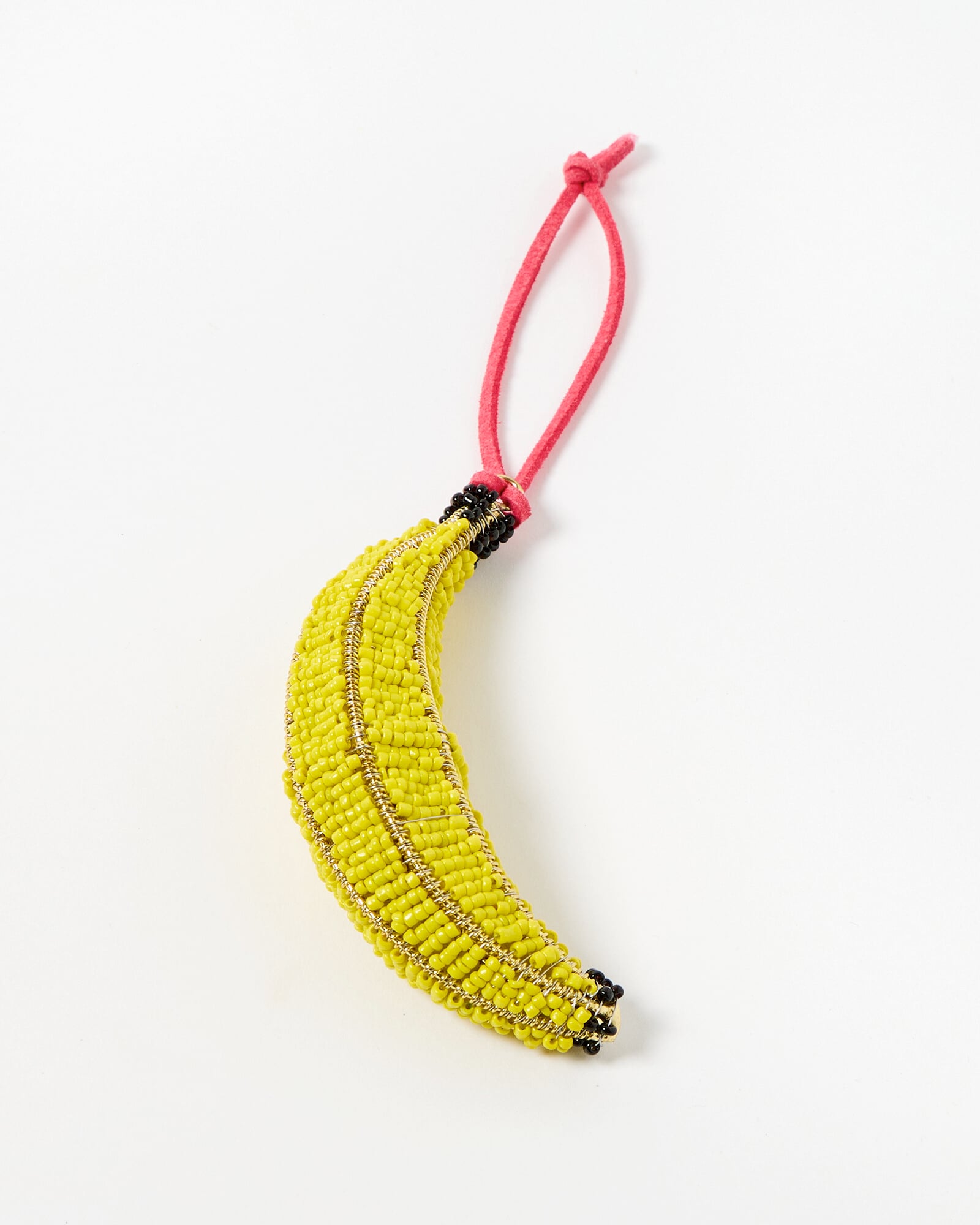 Yellow banana Christmas decoration beaded by hand. A fun, playful addition to the tree.