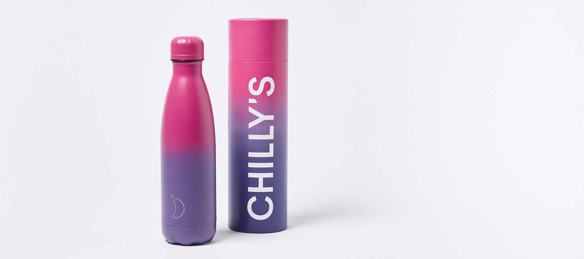 BPA free and easy to clean, each Chilly's bottle features an airtight screw lid and a double-walled vacuum insultation that keeps your cold drinks cold for 24 hours, and hot drinks hot for 12 too.