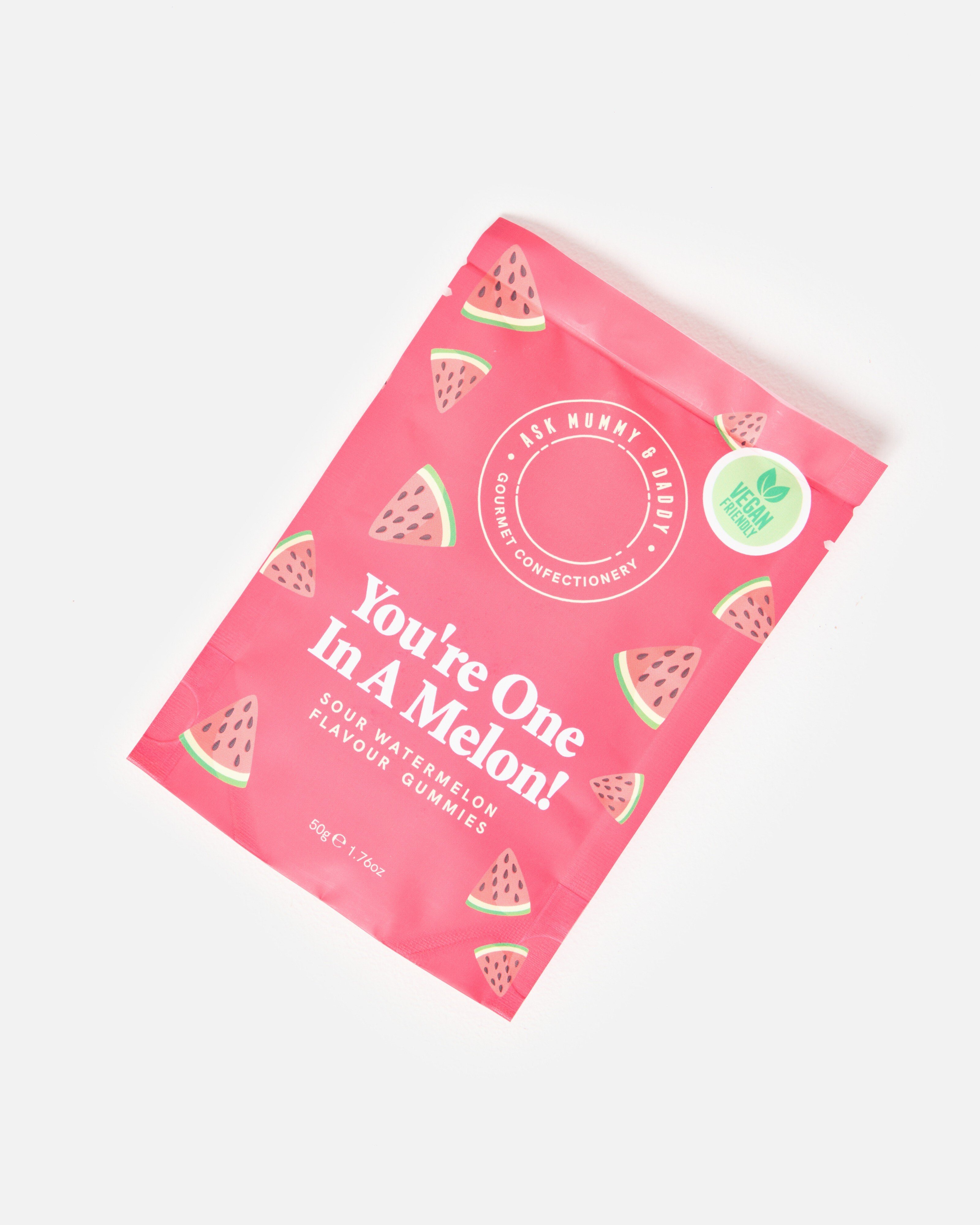 From sweet specialists Ask Mummy & Daddy come these new "You're One In A Melon" sour melon gummies packing a punch and promising to be a firm favourite. All gummies are vegan, vegetarian, dairy free, palm oil free and contain natural colours.