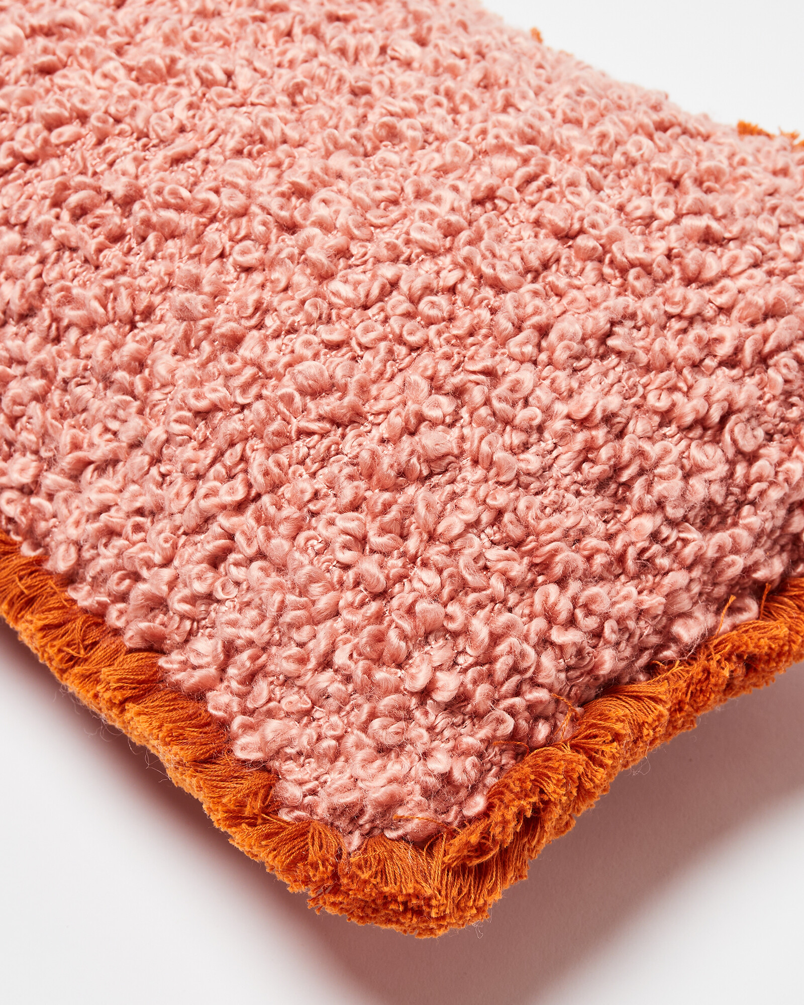 Boucle Fringed Pink Rectangular Cushion Cover 30x50cm