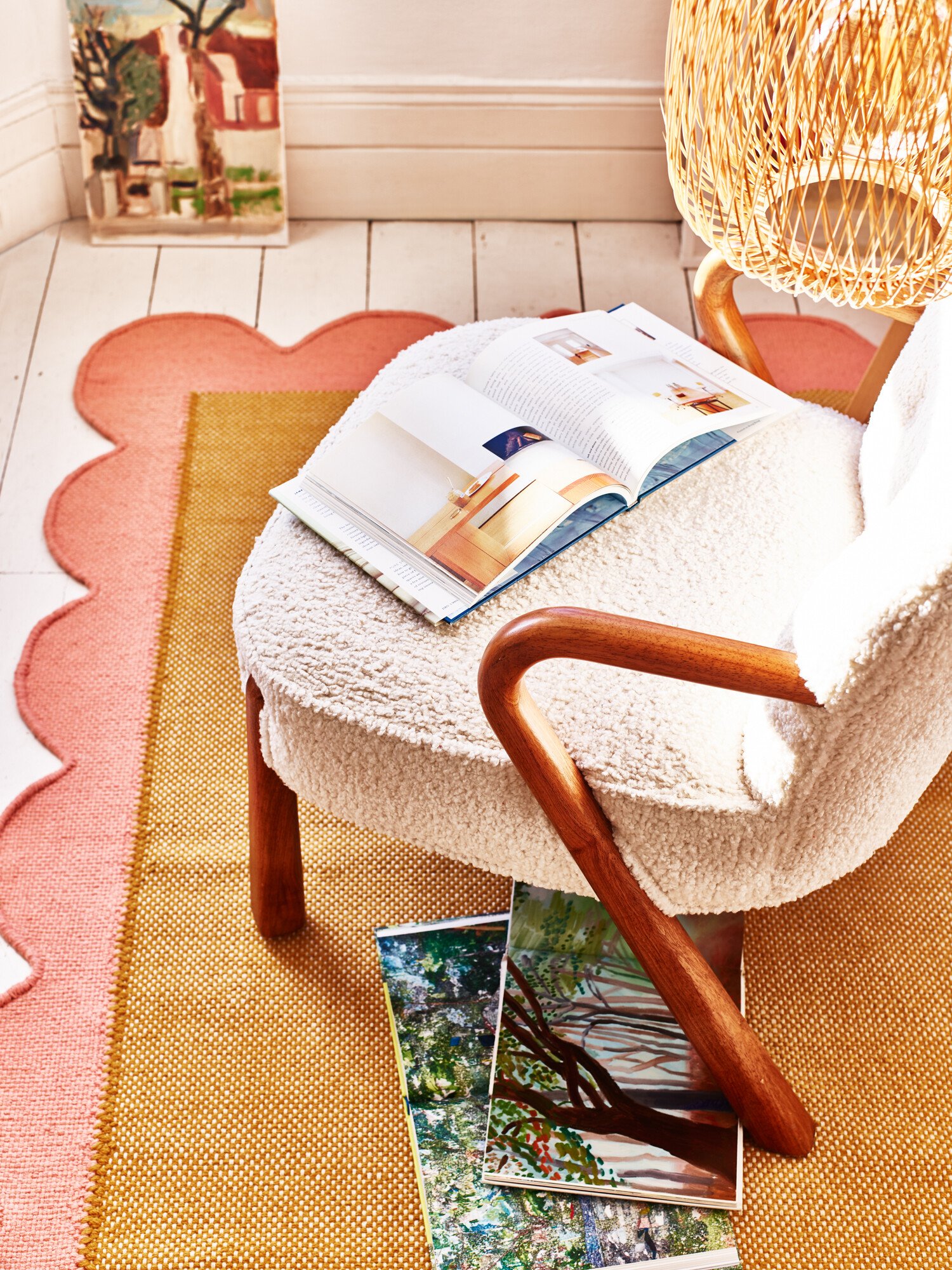 Cecily Handwoven Scalloped Yellow Rug 140x200cm