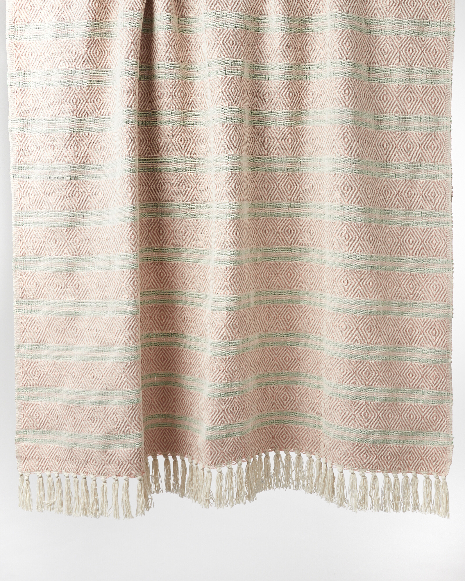 Add tone and texture to your home with this pink woven throw, featuring a geometric pattern, it is complete with fringed edging.