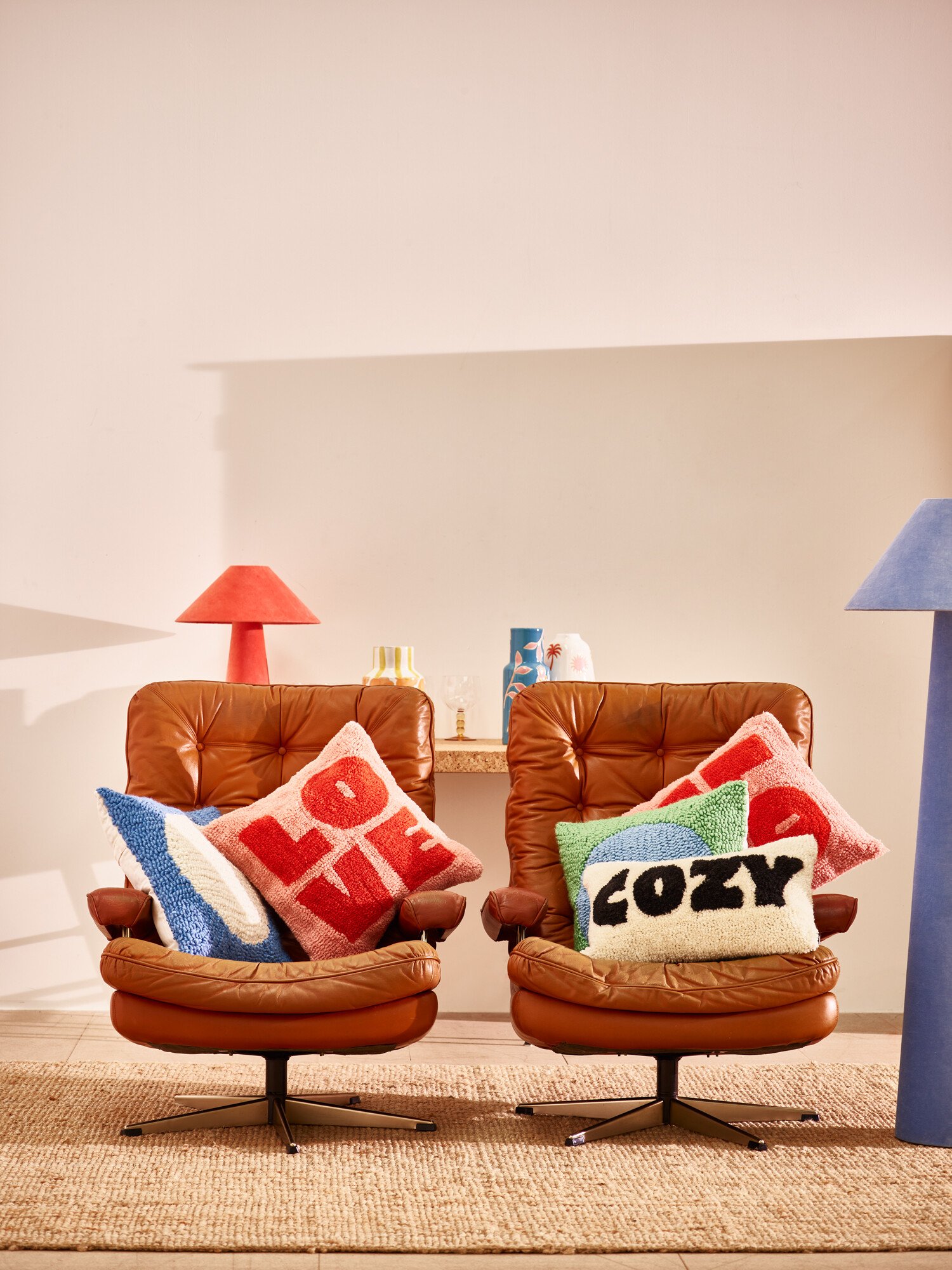 Cream rectangular tufted cushion cover with 'Cozy' lettering in black monogram across the front. Style with the Cozy throw, sham and mug to complete the set. Each cushion has been individually handcrafted using a tufting technique. Due to its handmade nature, each piece is unique and may slightly differ from the images. Requires a 30 x 19.7" cushion inner, sold separately.