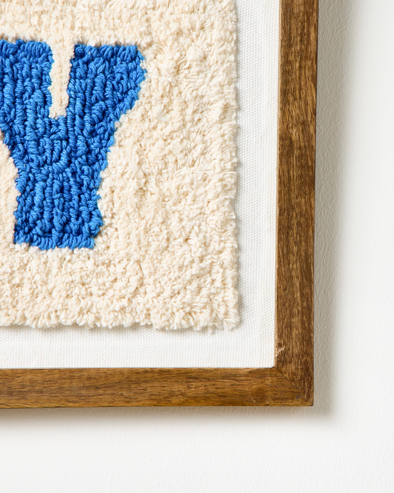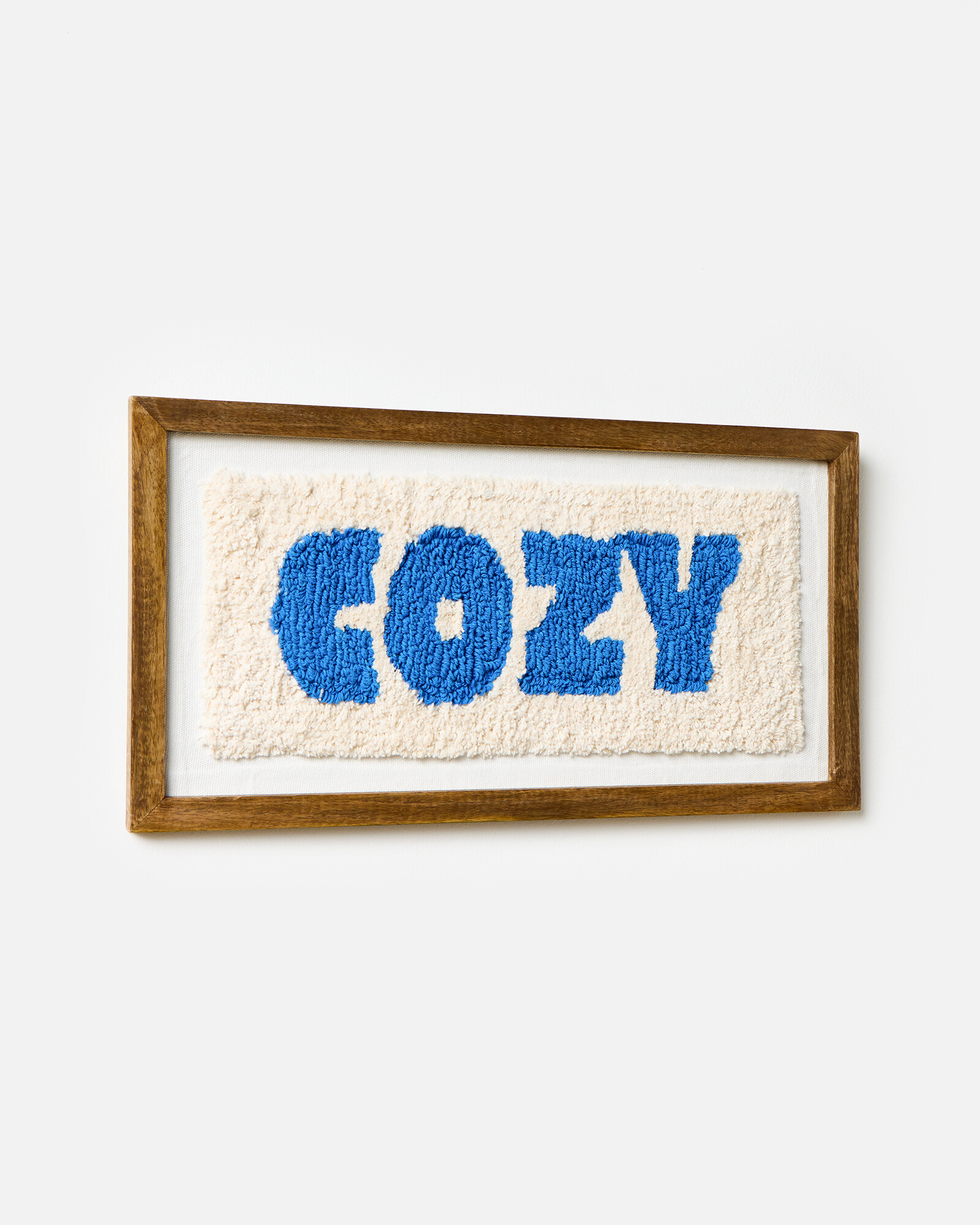 Inspired by our tufted Cozy Cushion Cover, this framed wall art features the same 'Cozy' motif in bold blue lettering on a textured cream background. Displayed in a dark wooden frame, hang in your hallway, living room or bedroom for a touch of soft, cosy decor. Style alongside the Cozy Cushion Cover and Cozy Throw to complete the collection.