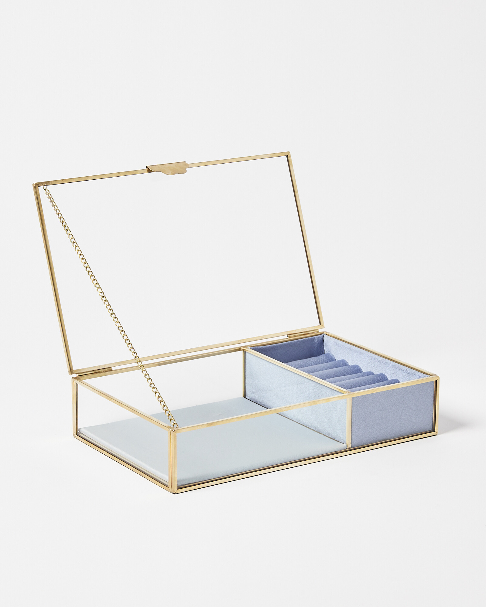 Gold & Glass Blue Satin Jewellery Box