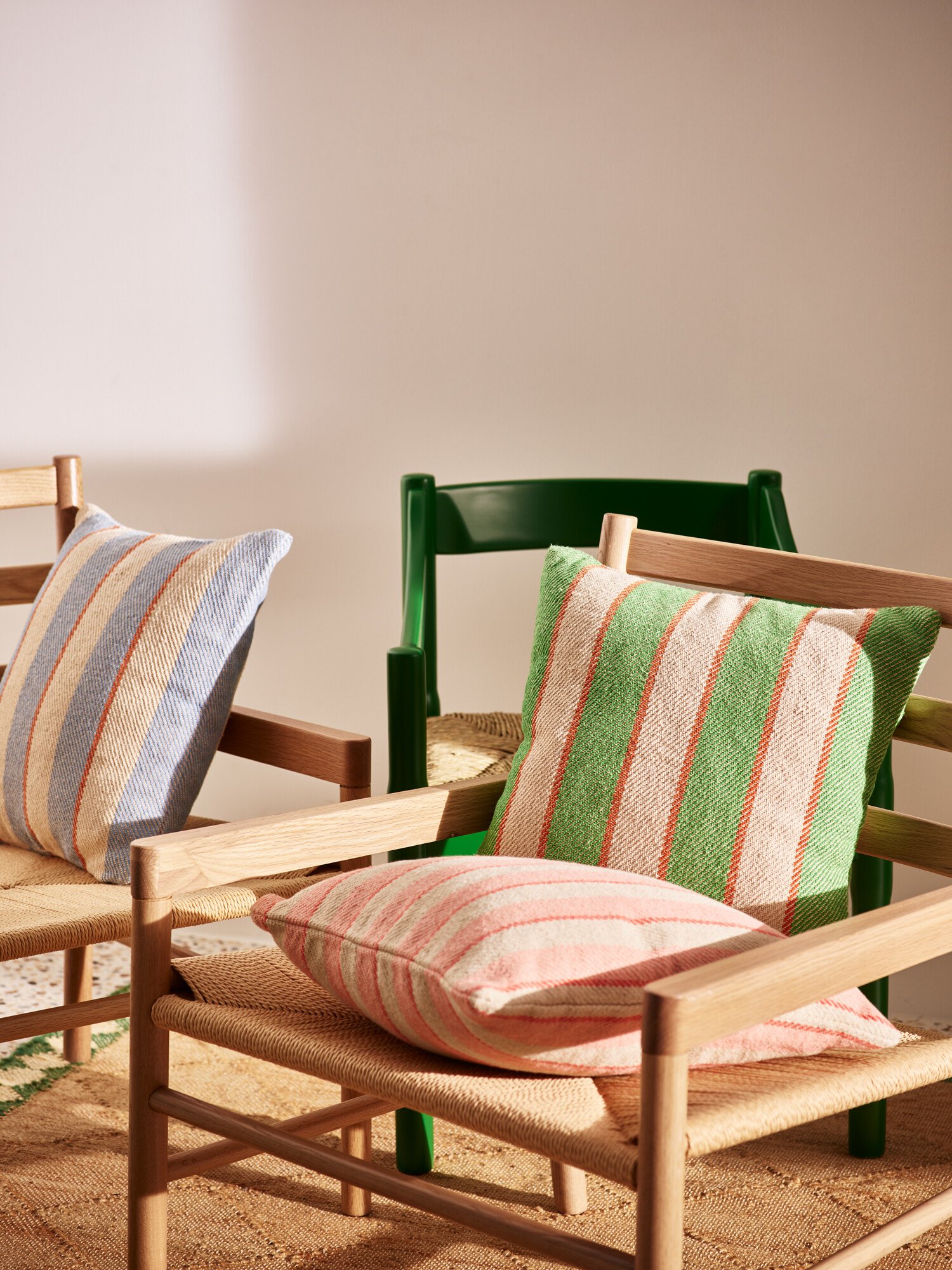 Green & White Woven Stripe Cushion Cover 45x45cm