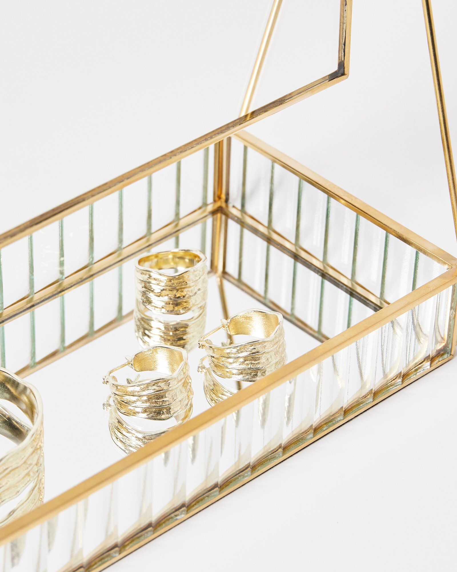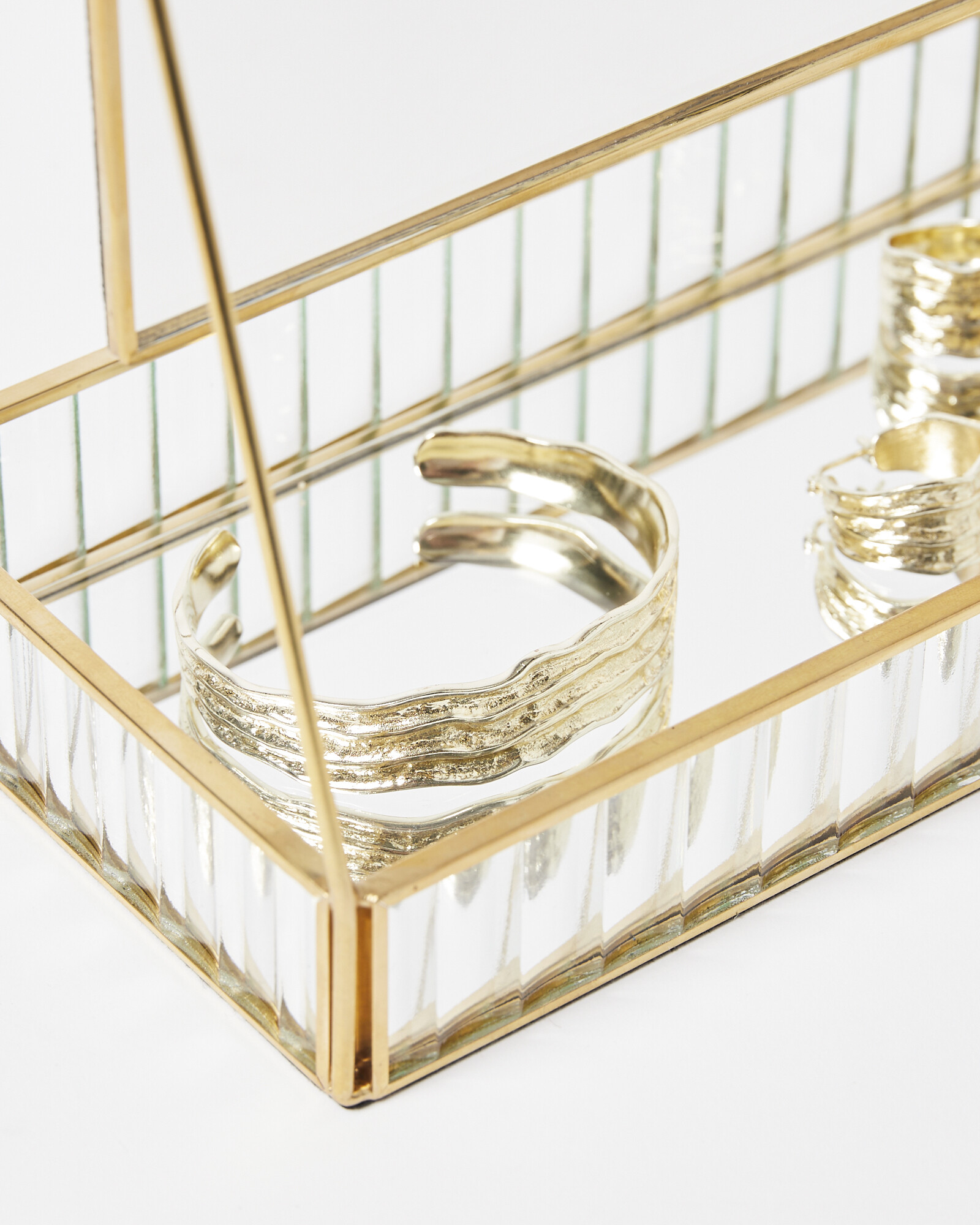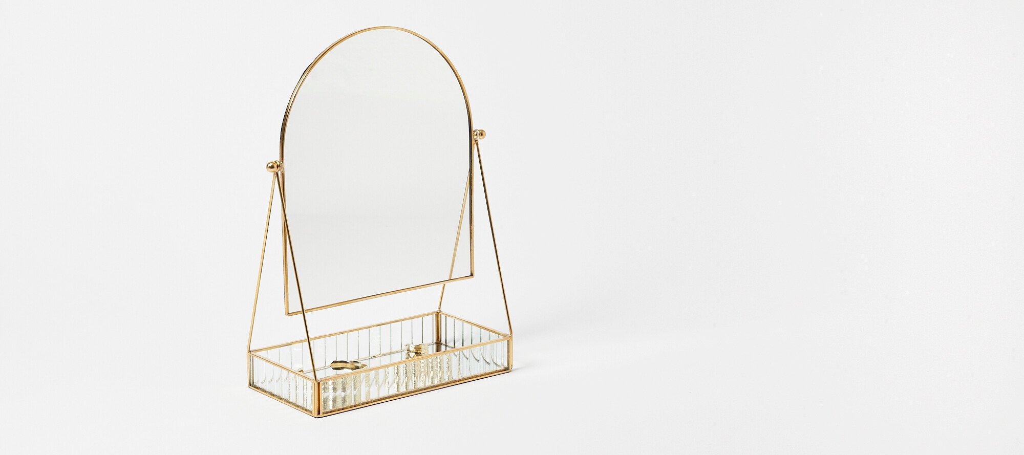 Pairing an arched tilting mirror with a ribbed glass tray beneath to store your beauty faves or jewellery essentials, the Loire Gold & Glass Dressing Table Mirror is a sleek and stylish addition to your boudoir accessories.