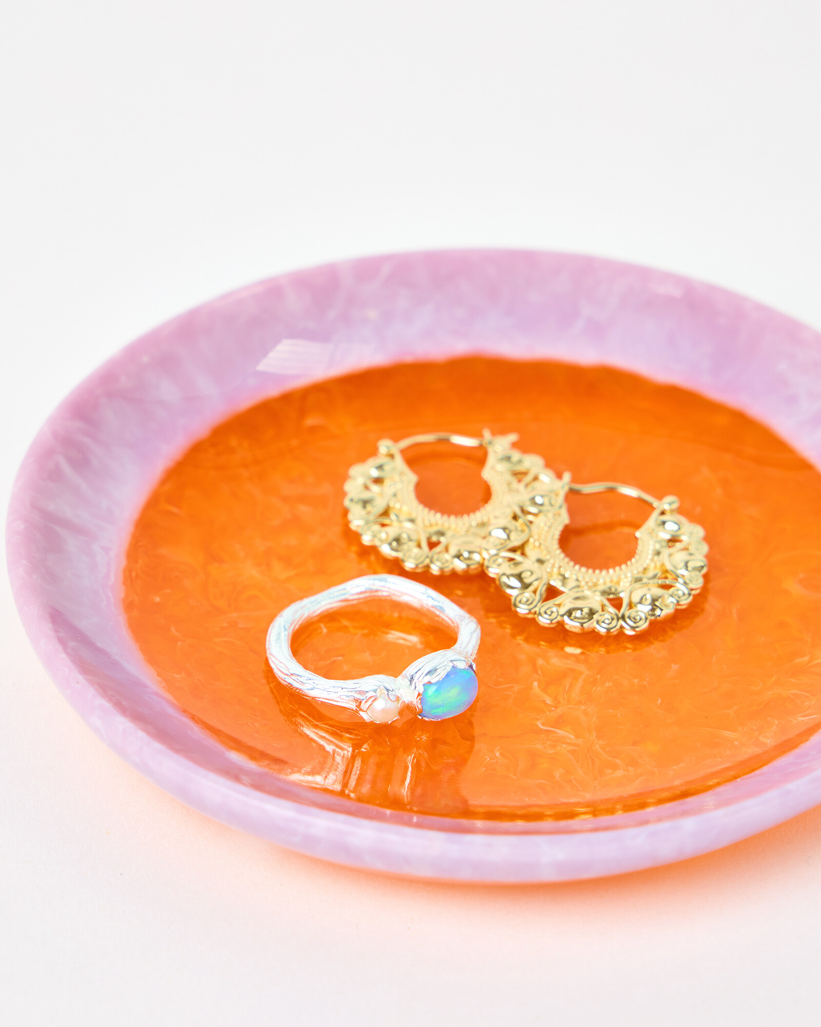Home | Jewellery | Ring Holders & Trinket Dishes | Orange & Pink Resin Trinket Dish