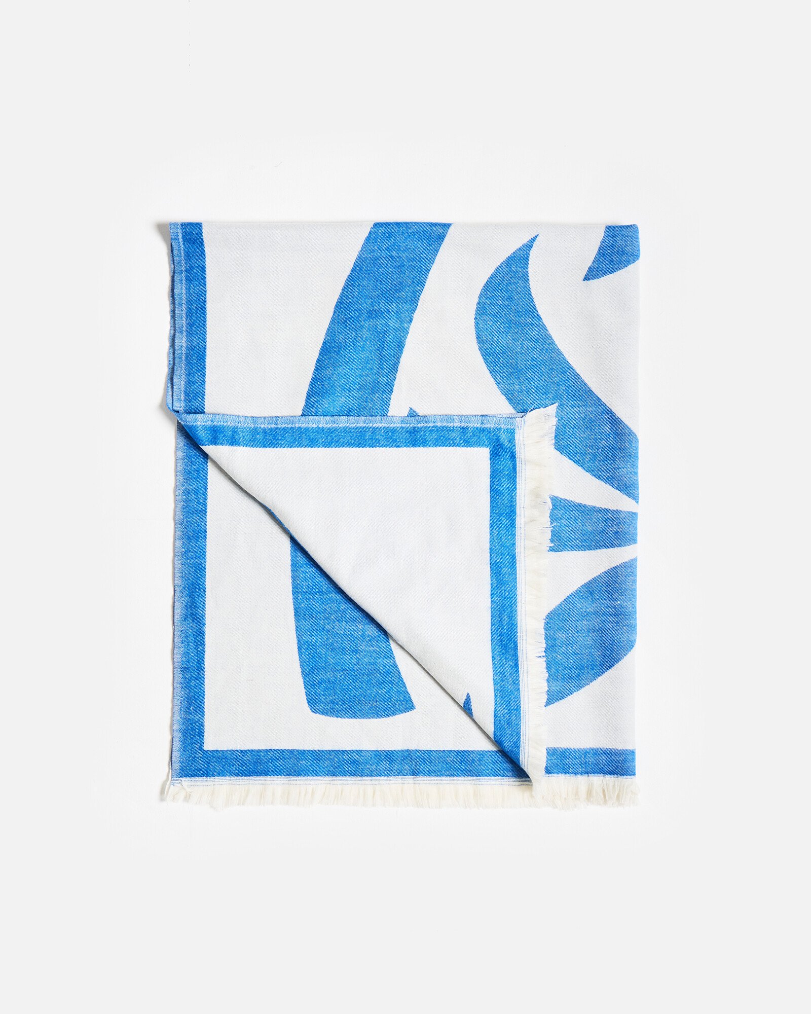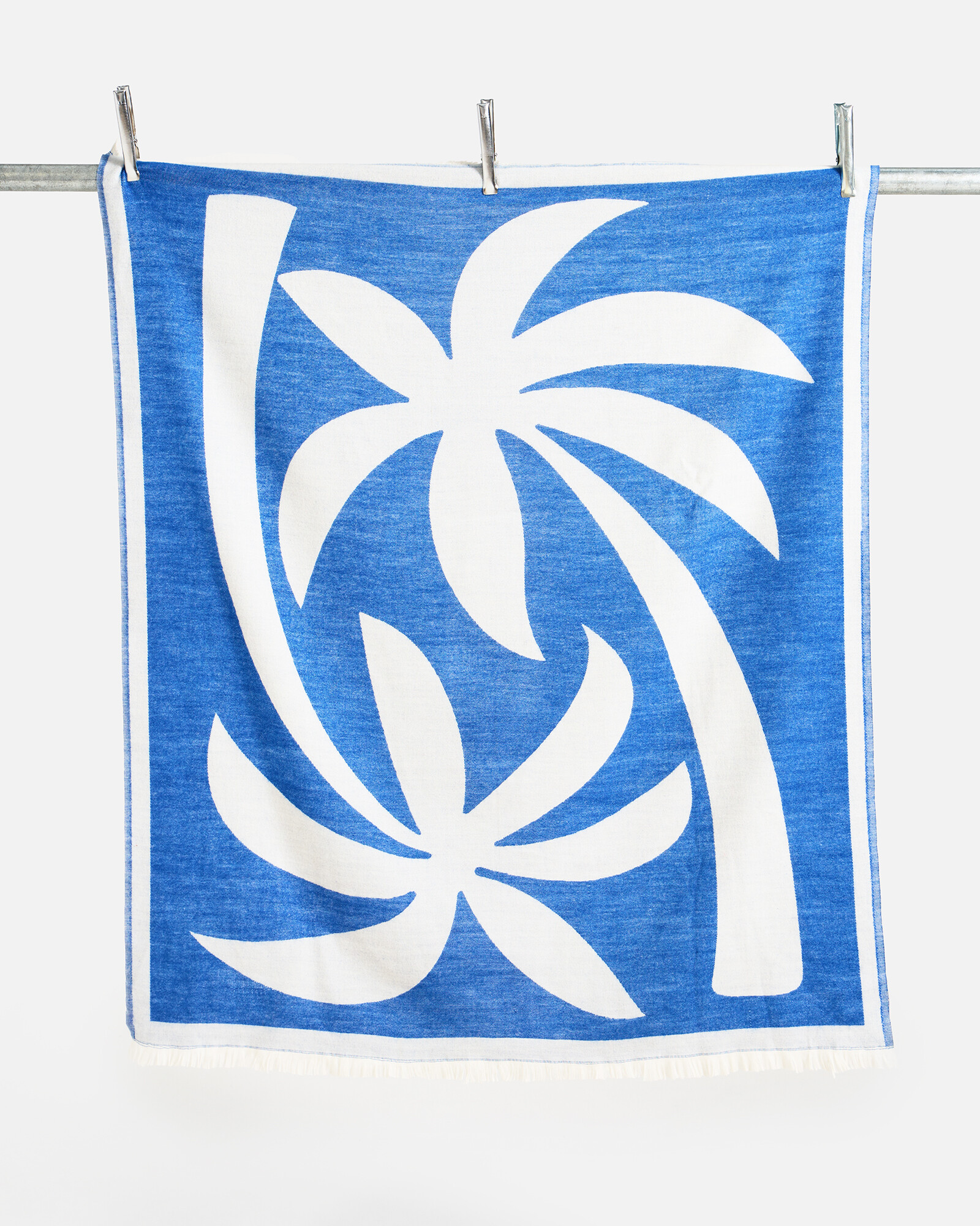 Reversible woven jacquard throw featuring a blue double palm motif, designed by the OB in-house creative team. Choose to have palms on a white background, or white palms on a blue background, and style with complimentary décor in your living space for a coordinated feel. Finished with a contrasting border and white tassel trim along the short edges.