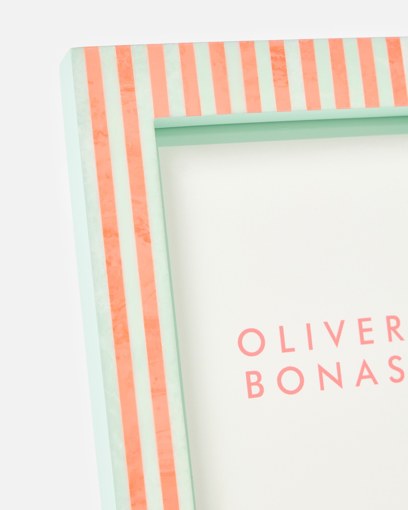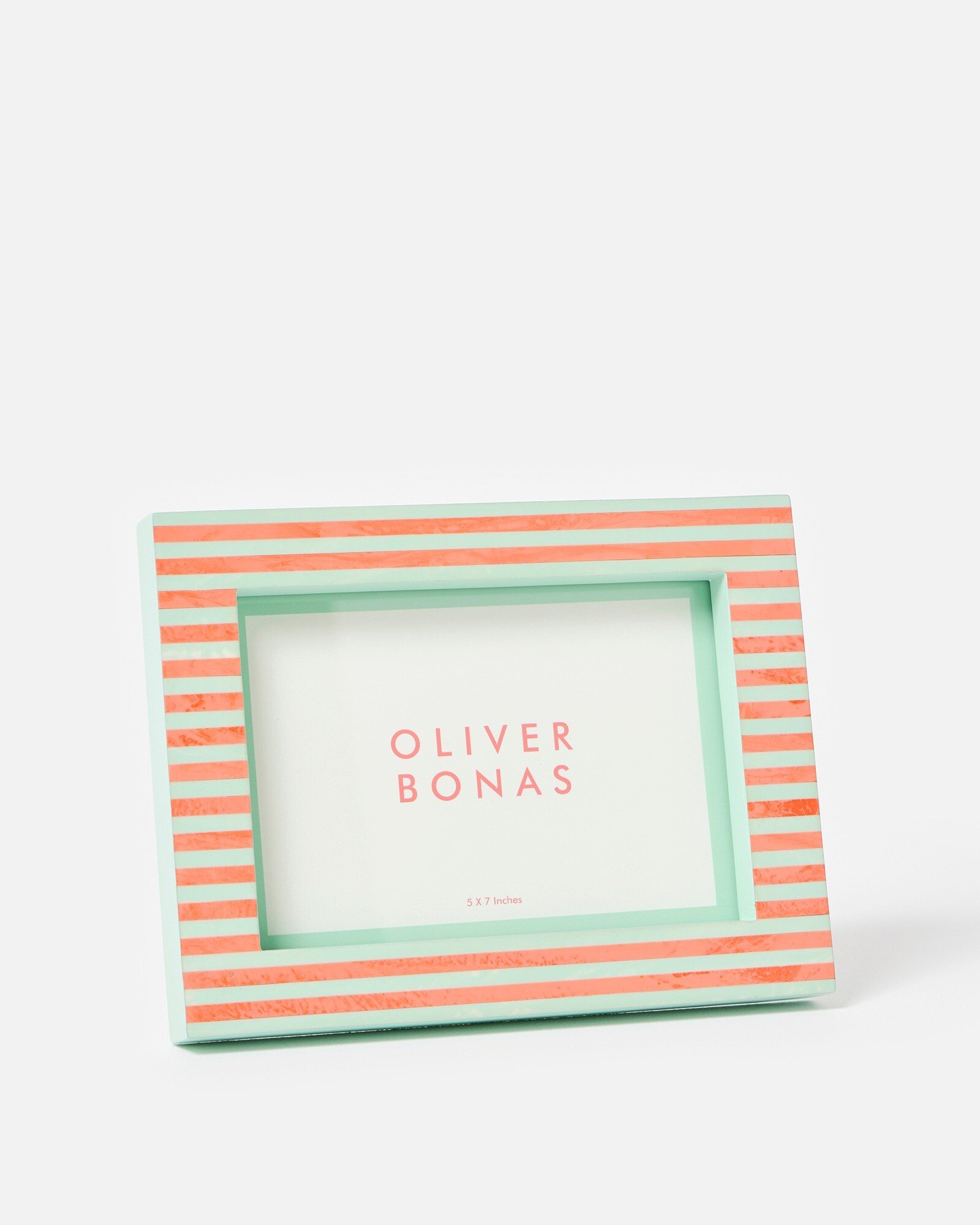 Home | Homeware | Photo Frames | Paloma Sage & Coral Stripe Resin Photo Frame 5x7"
