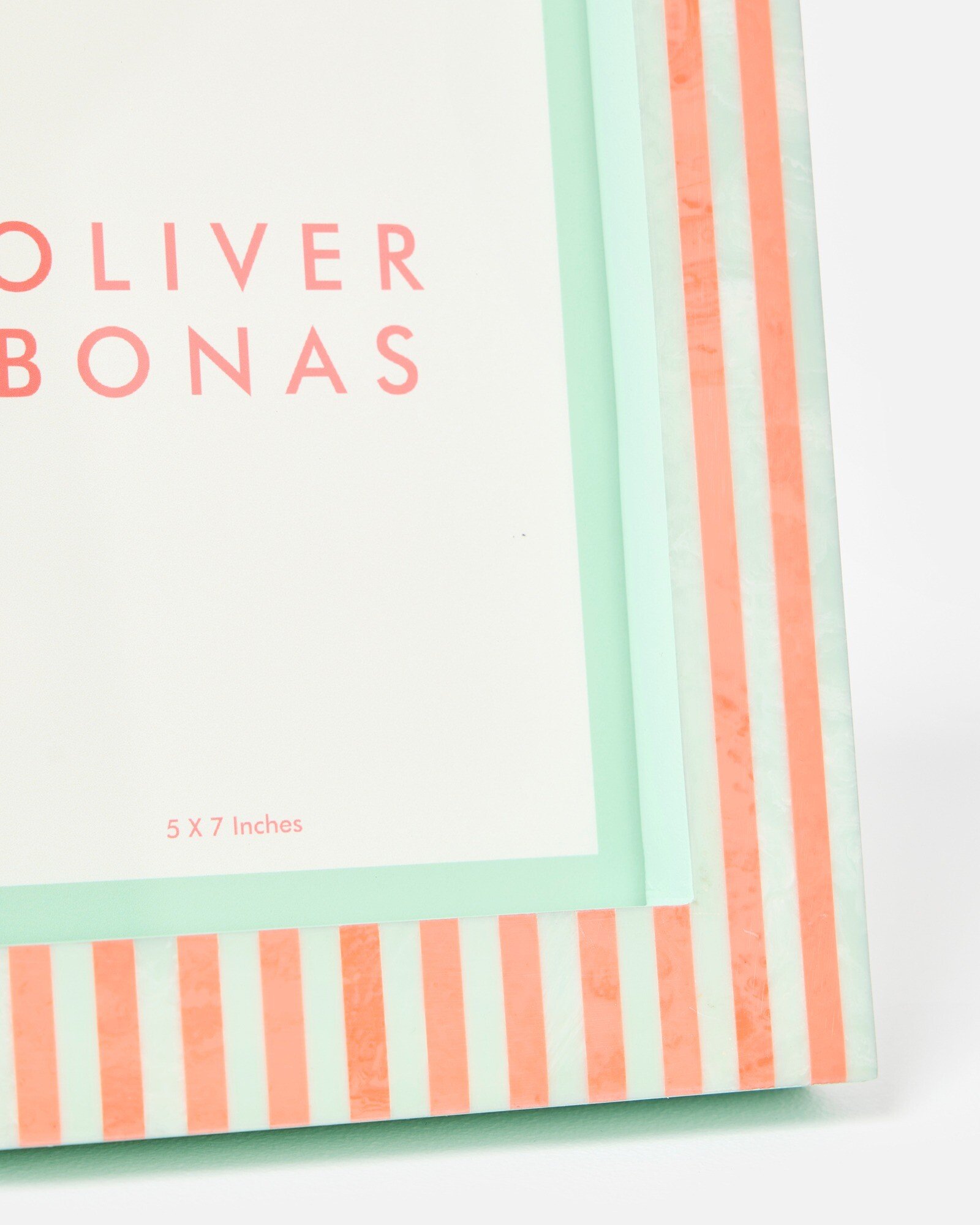 Paloma Sage & Coral Stripe Resin Photo Frame 5x7"