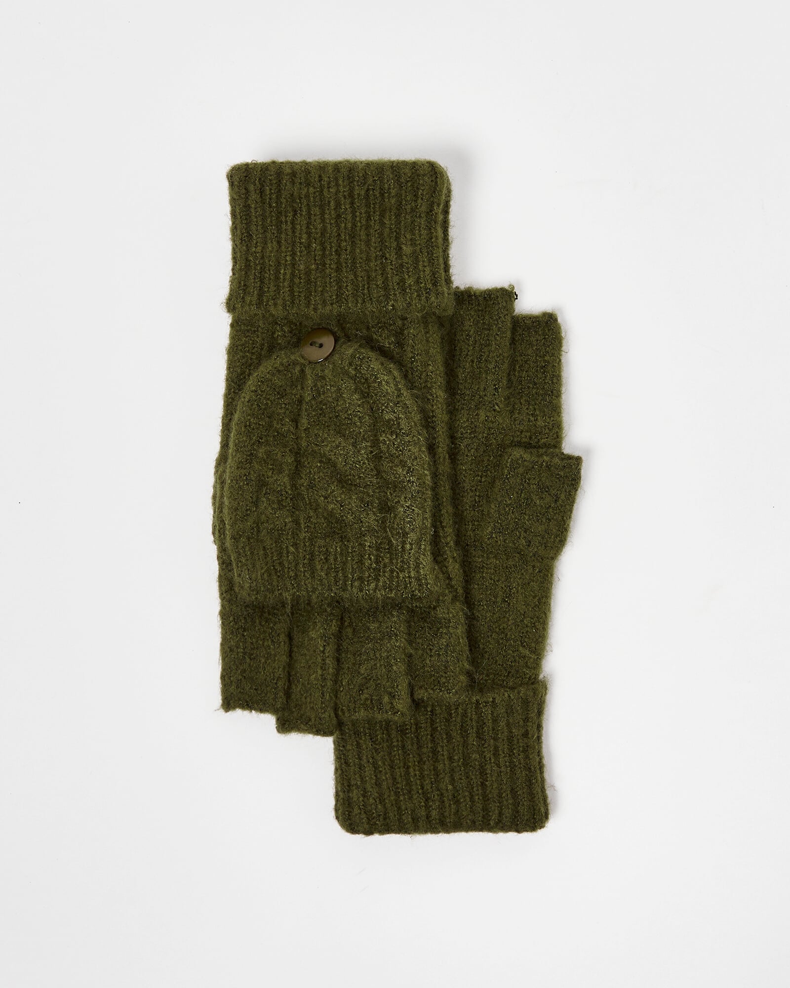 Khaki Green Cable Knitted Fingerless Gloves