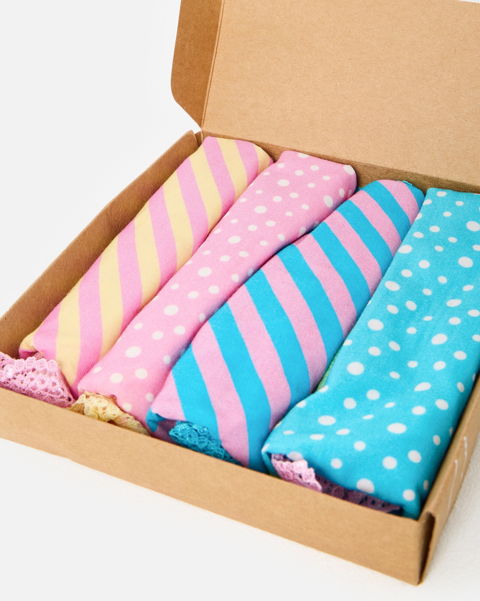 Pack of four Stripe & Stare original knickers in a striped and spotted pattern in bright tones of blue, pink, yellow and green. Packaged in a brown gift box, it's made from 95% biodegradable TENCEL? Modal x Micro for a cloud-soft and comfortable fit that leaves no unsightly lines.