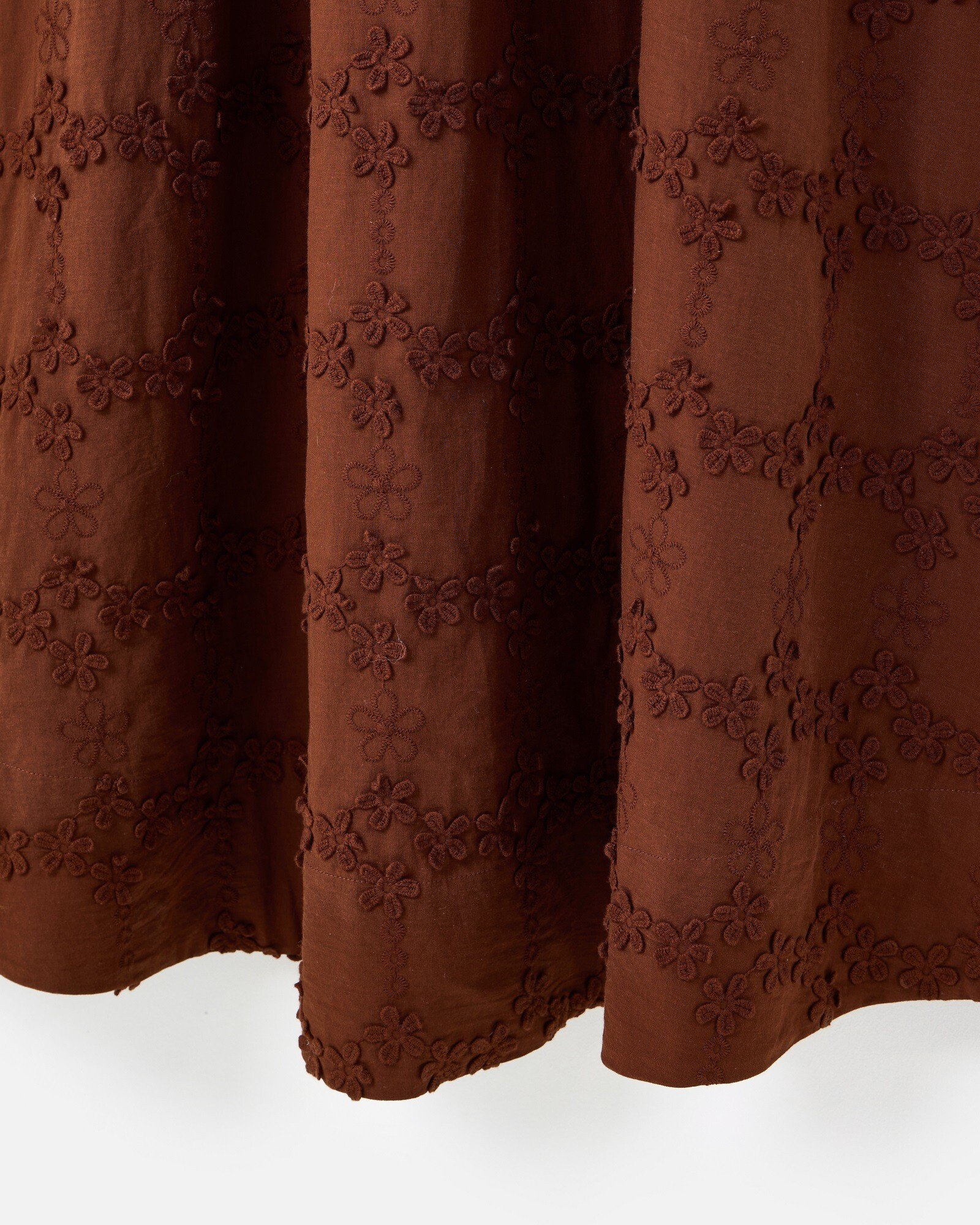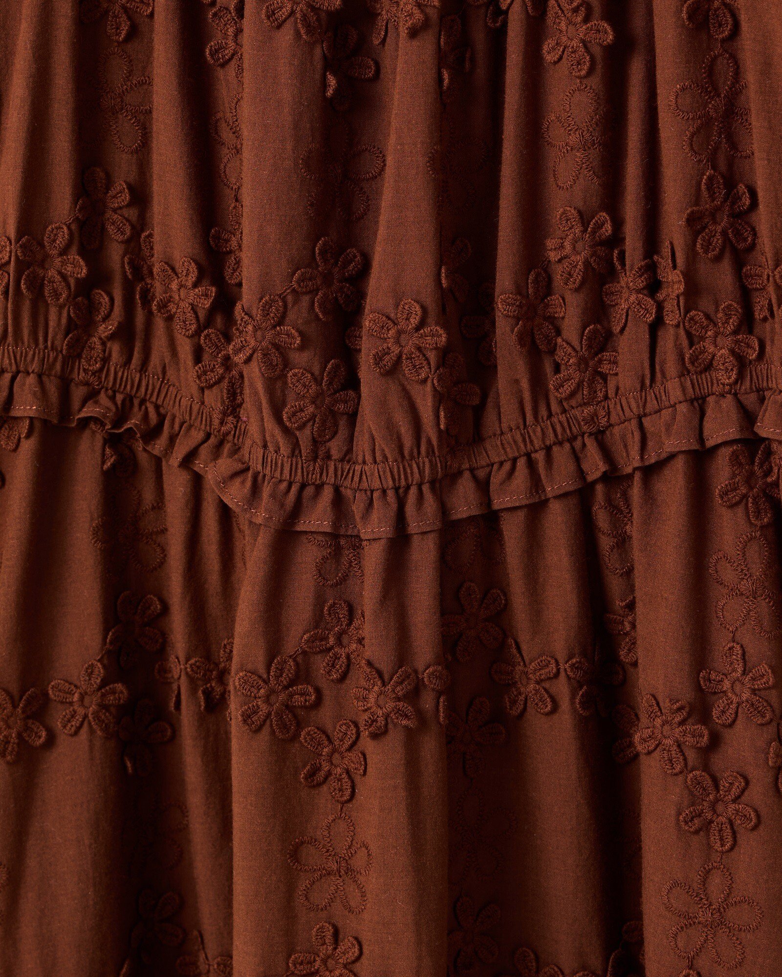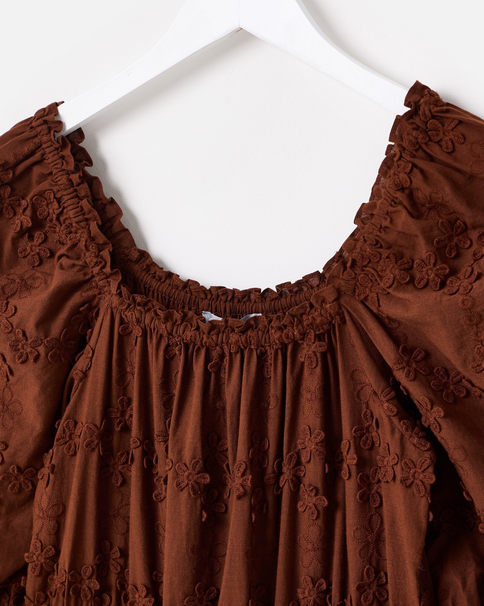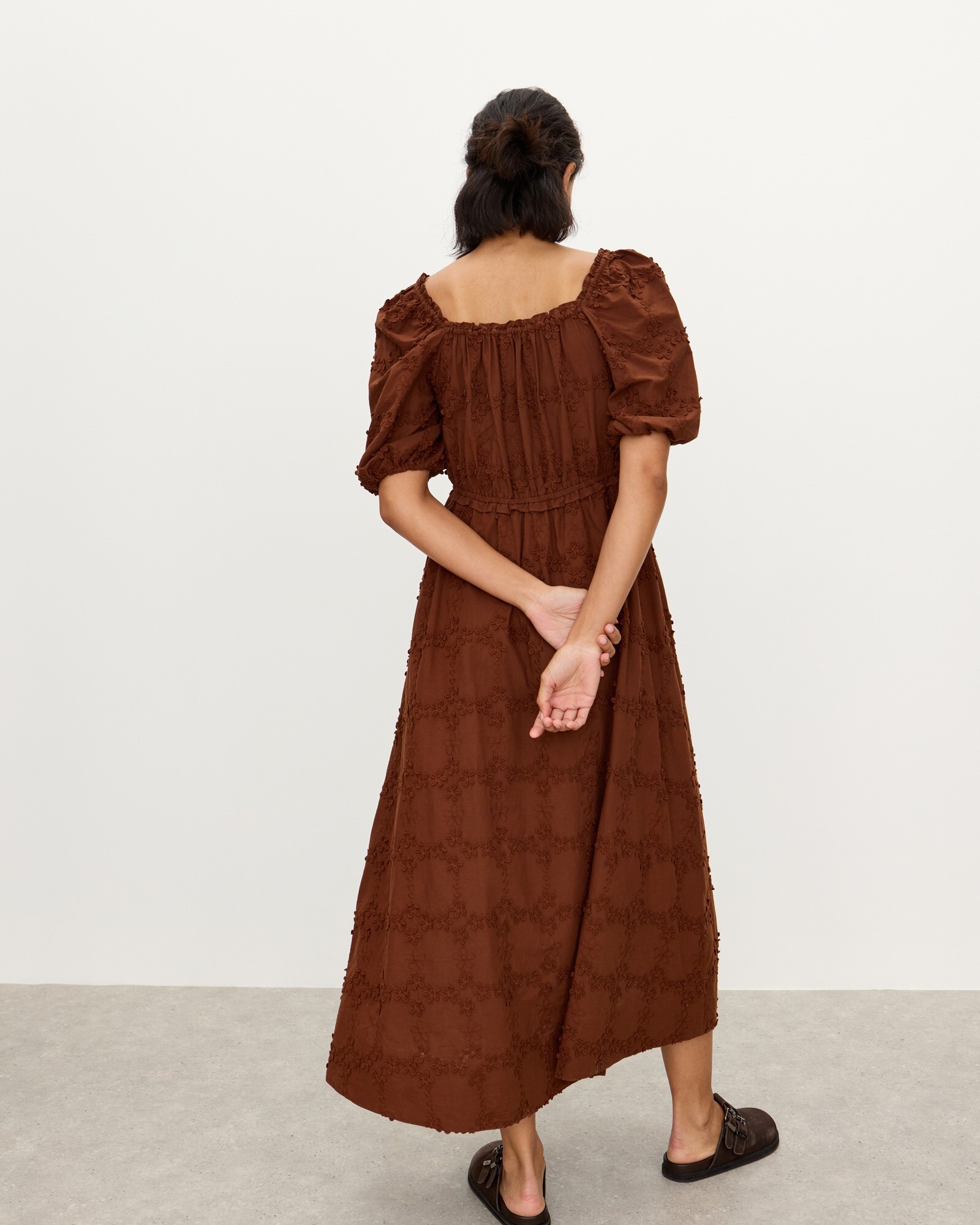 Chocolate Brown 3D Floral Textured Bardot Midi Dress