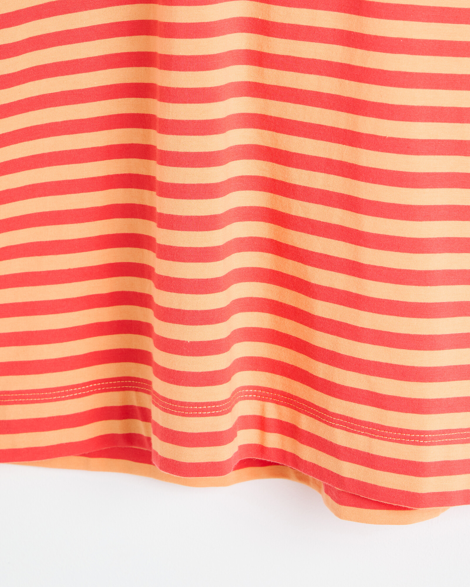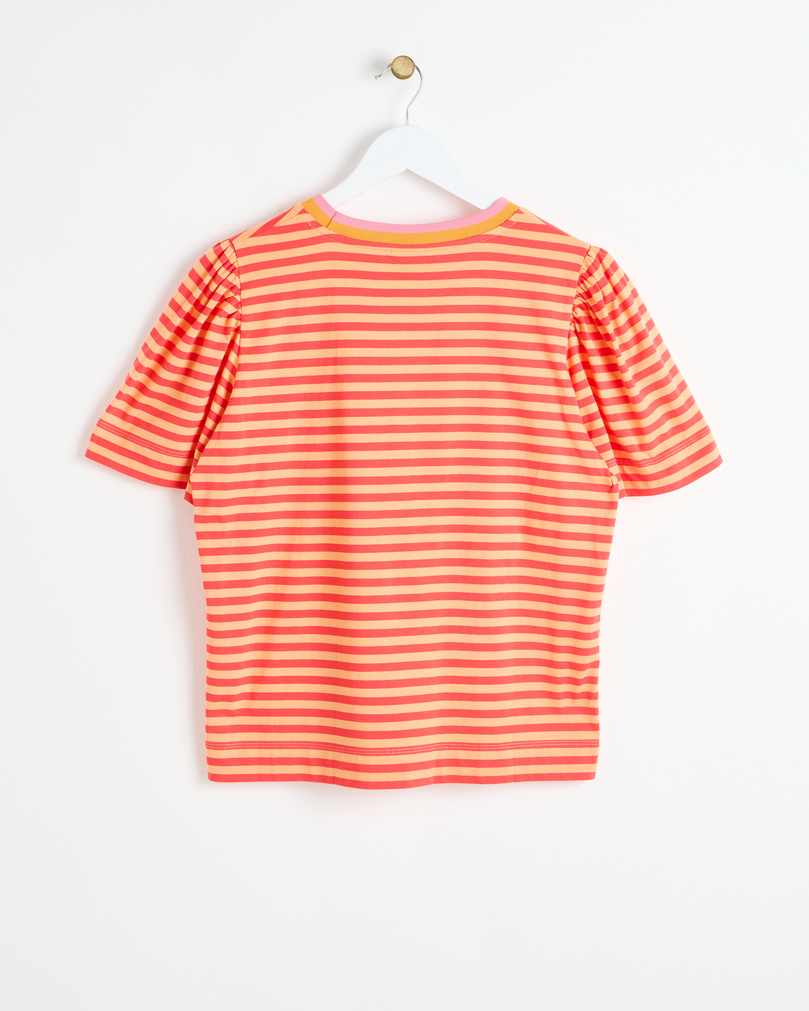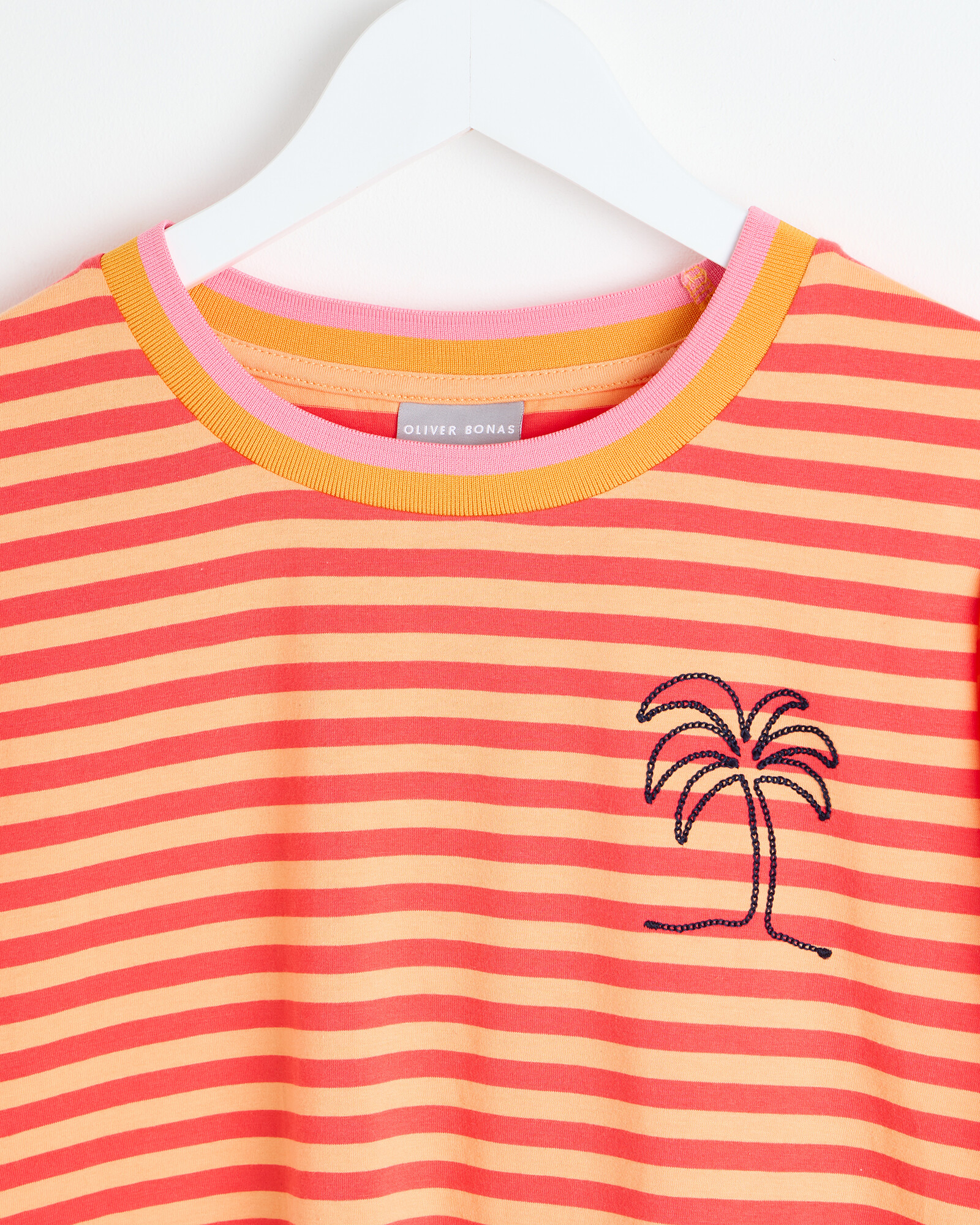 Cotton T-shirt with a tonal orange stripe, pleated sleeves and embroidered palm tree motif.