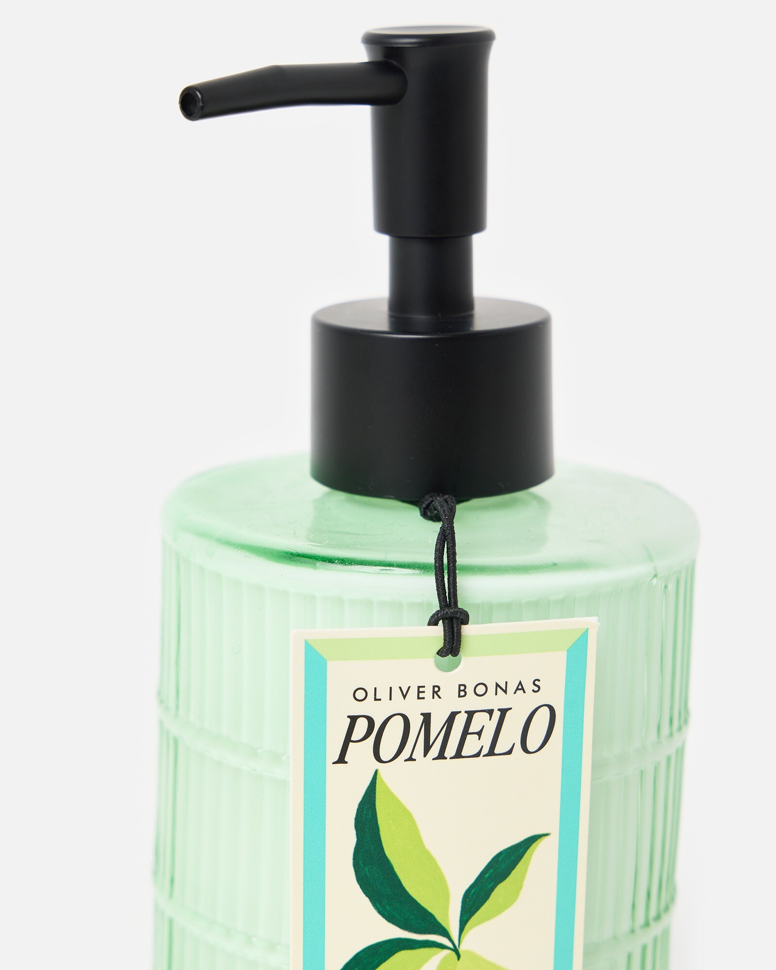 Nourishing hand and body moisturiser scented with vibrant and fresh fragrance notes of pomelo and basil, packaged in a reusable green glass bottle with a matte black pump. Pair with the matching hand wash to complete your pomelo and basil scented routine.