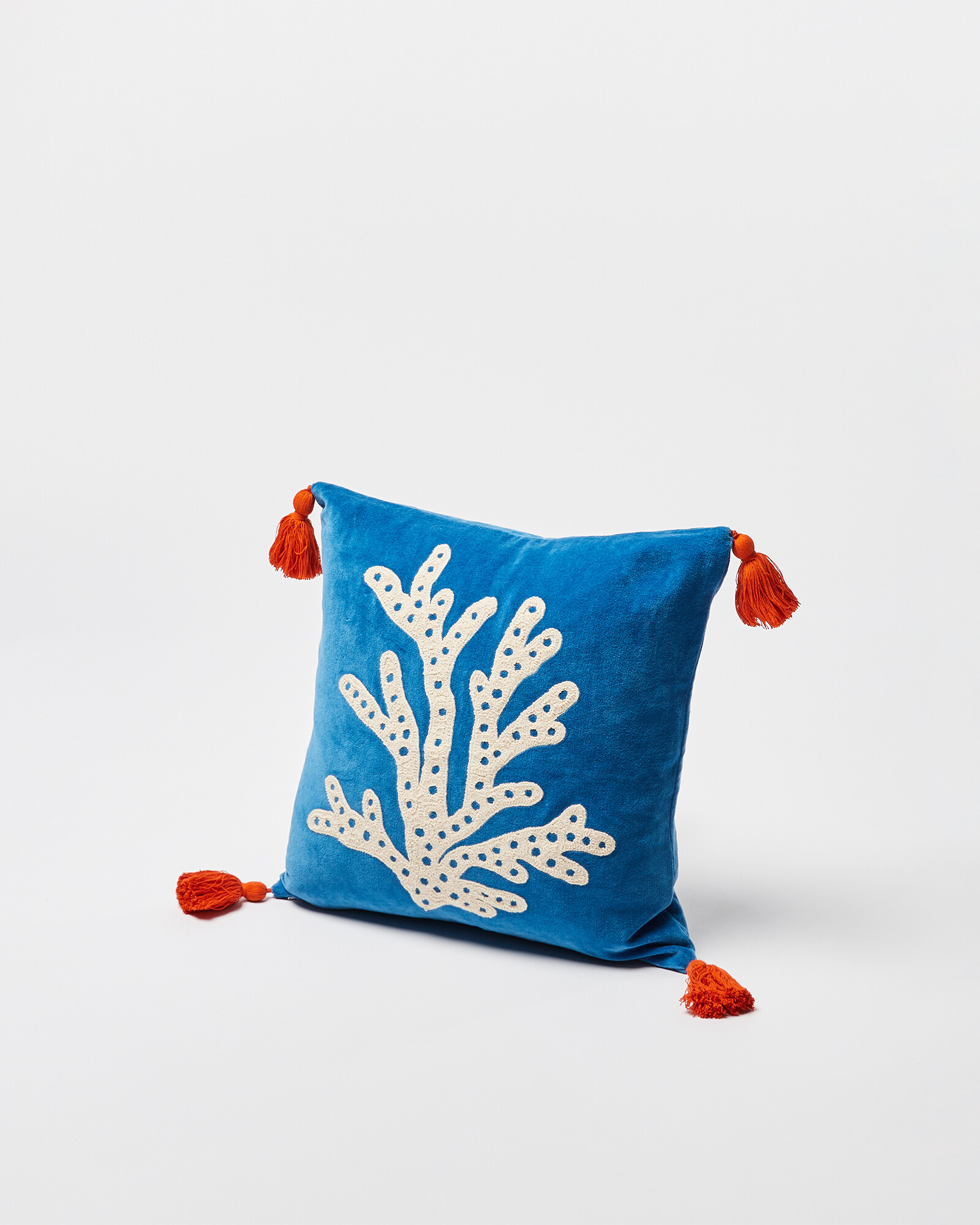 Embroidered Coral Blue Velvet Cushion Cover