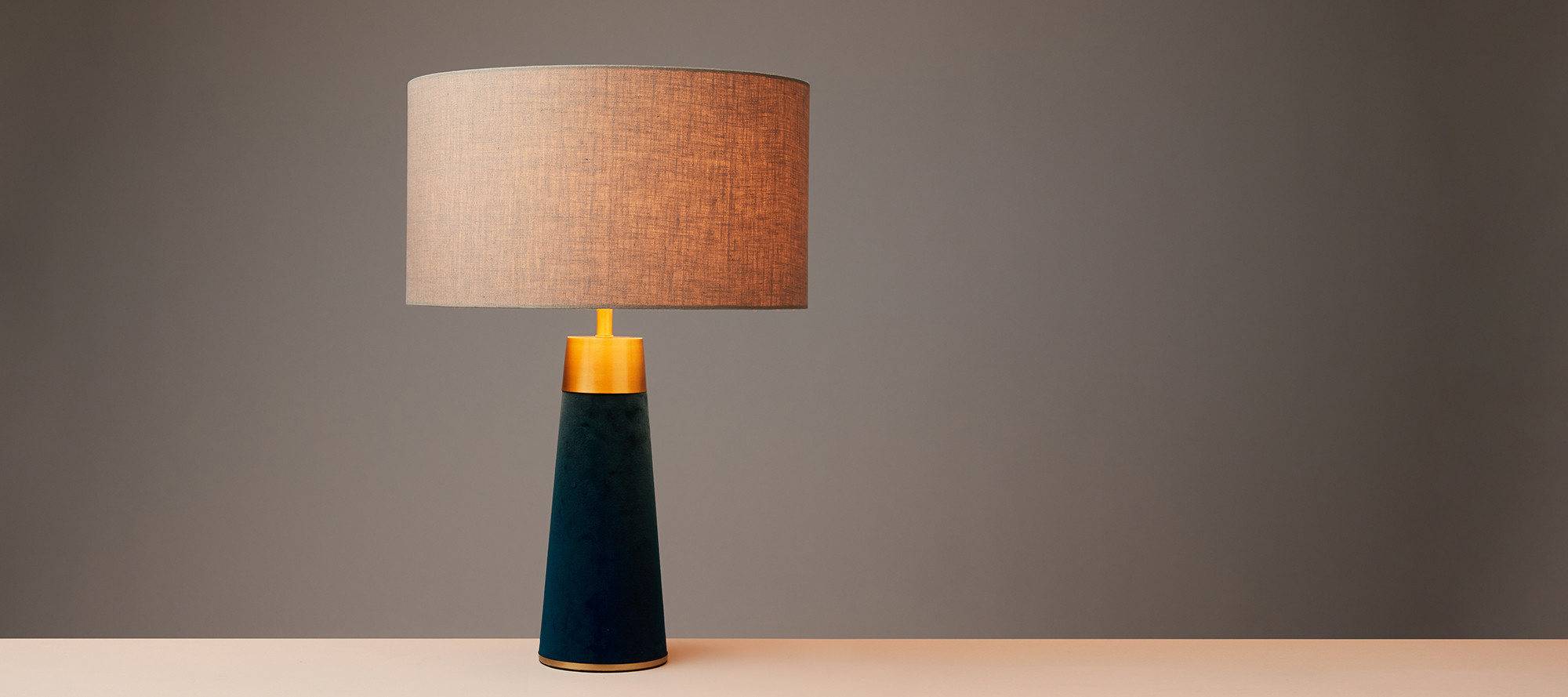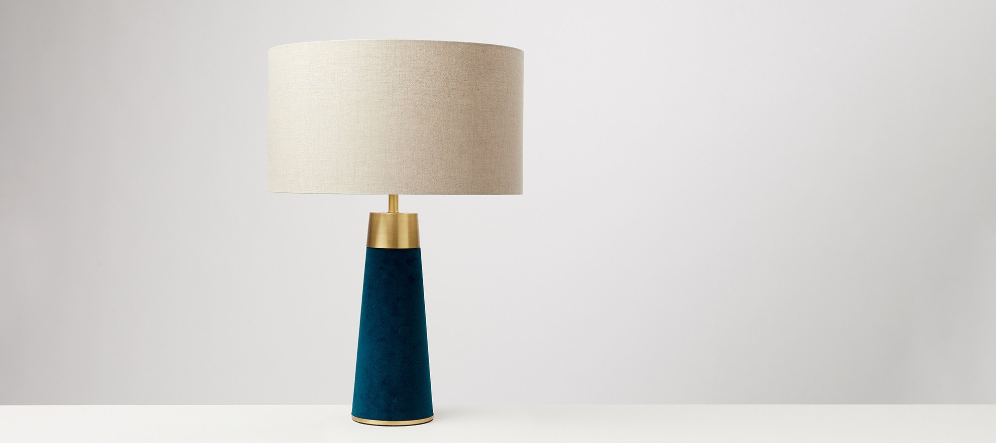 Home | Ero Petrol Blue Velvet Shade Table & Desk Lamp Large