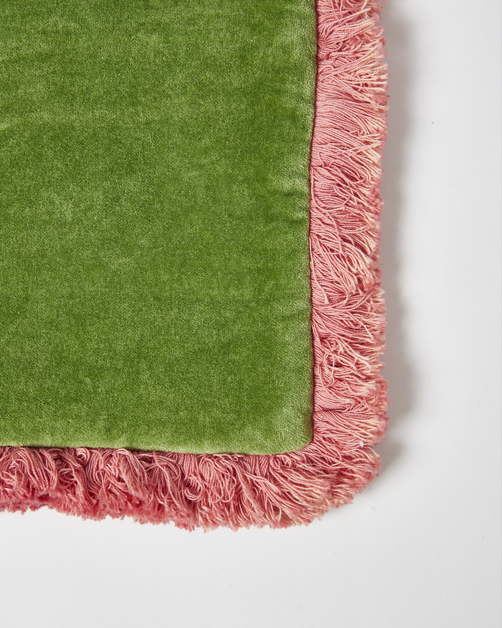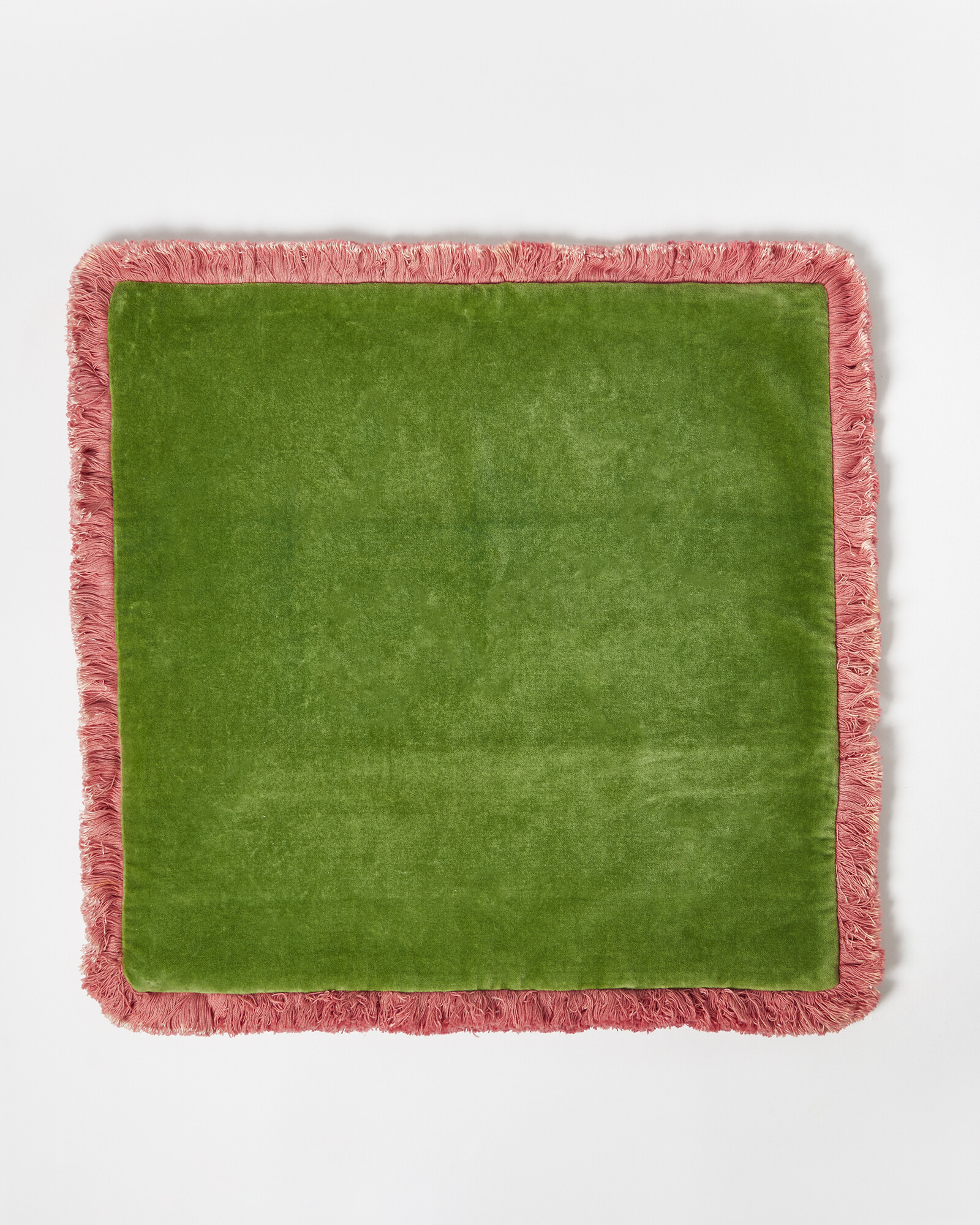 Add tactility to your home with the Issey Cushion Cover in soft green velvet with pink fringing. Add a separate cushion inner to complete the look.