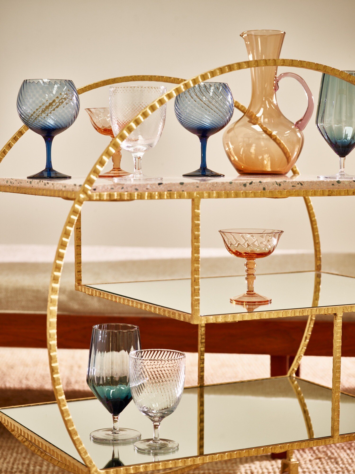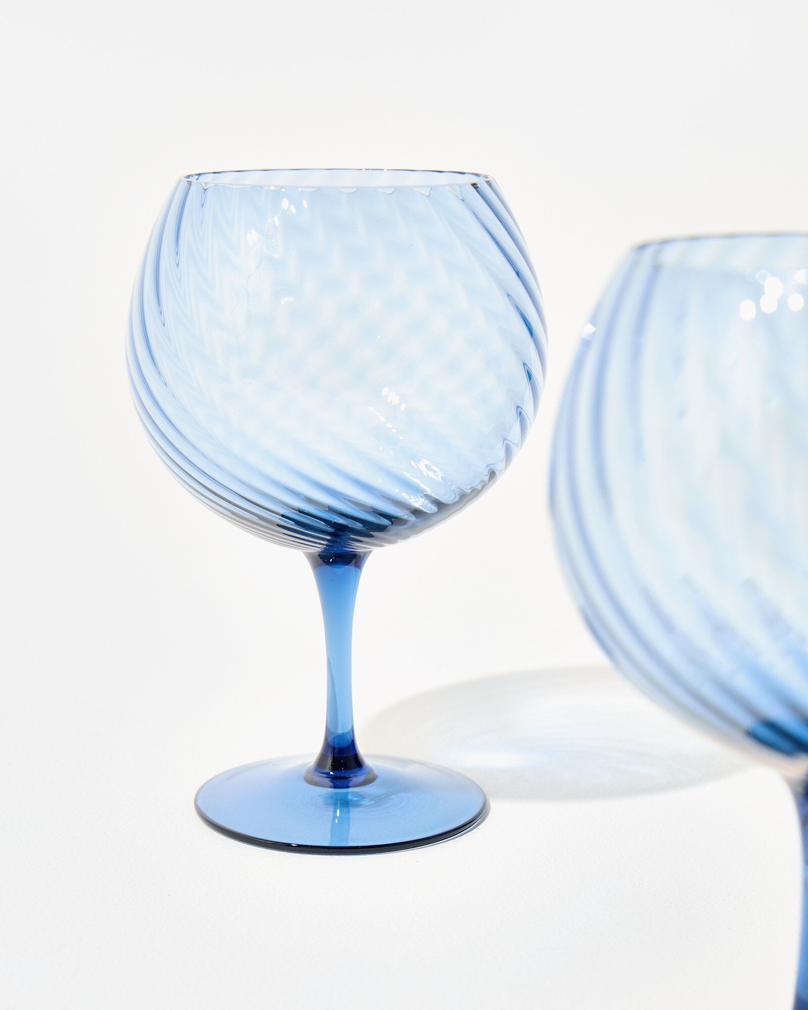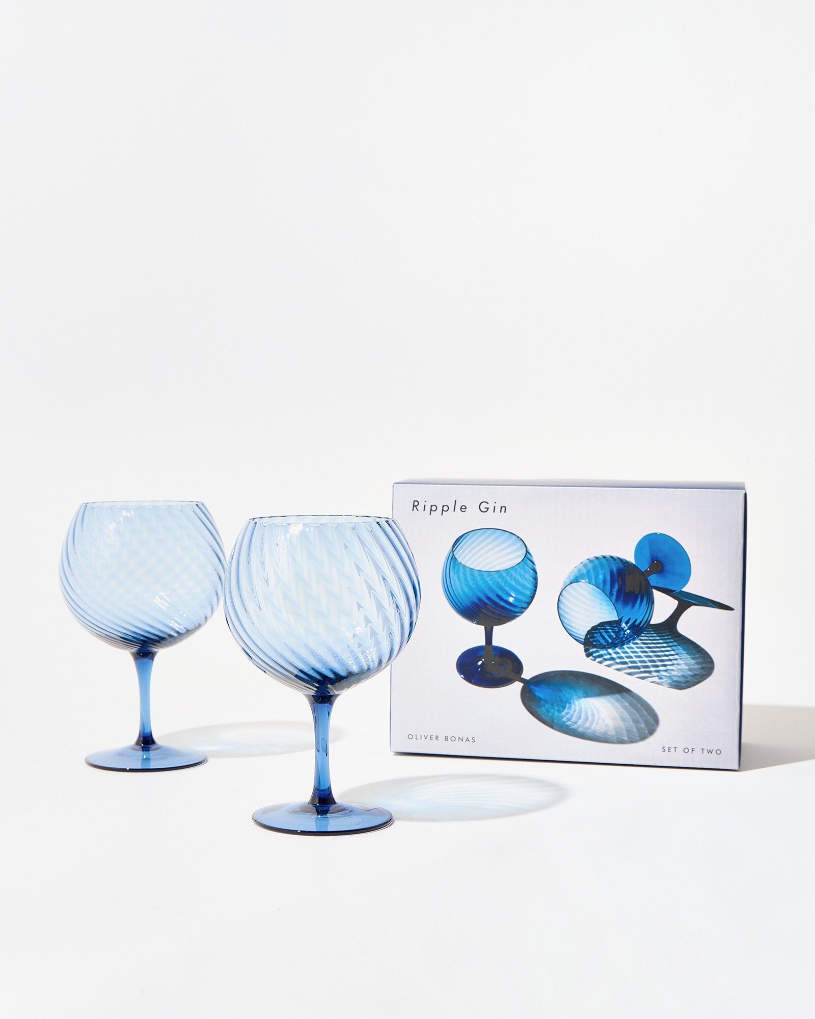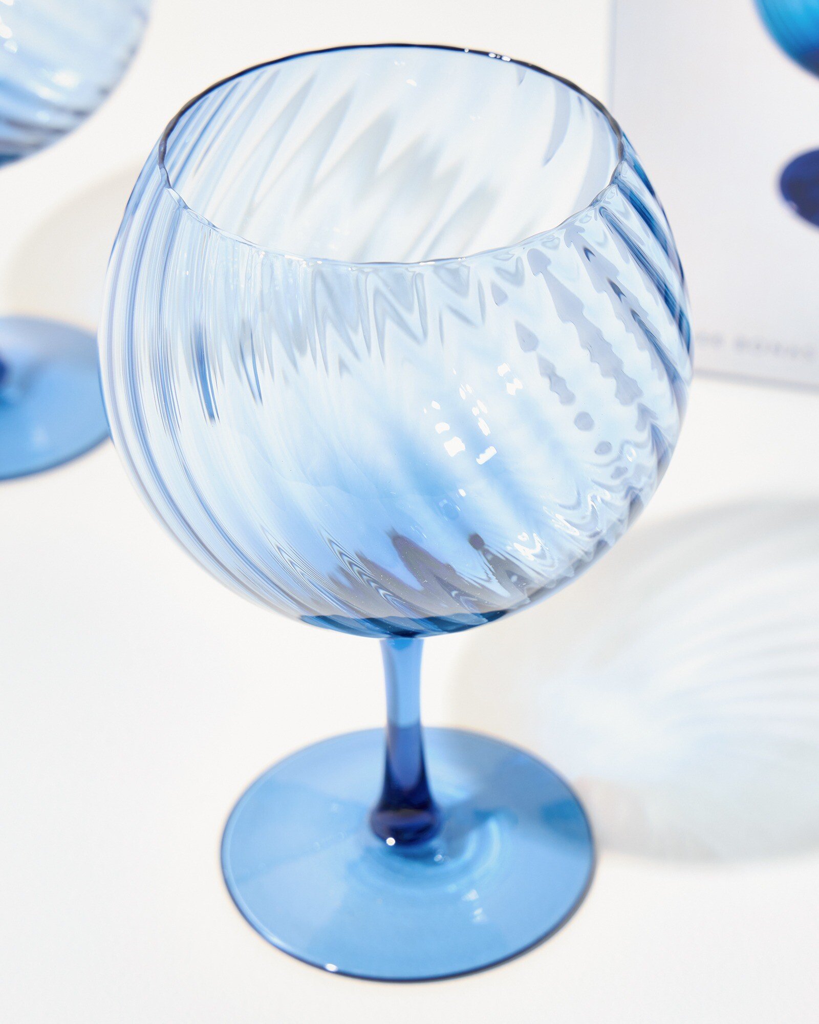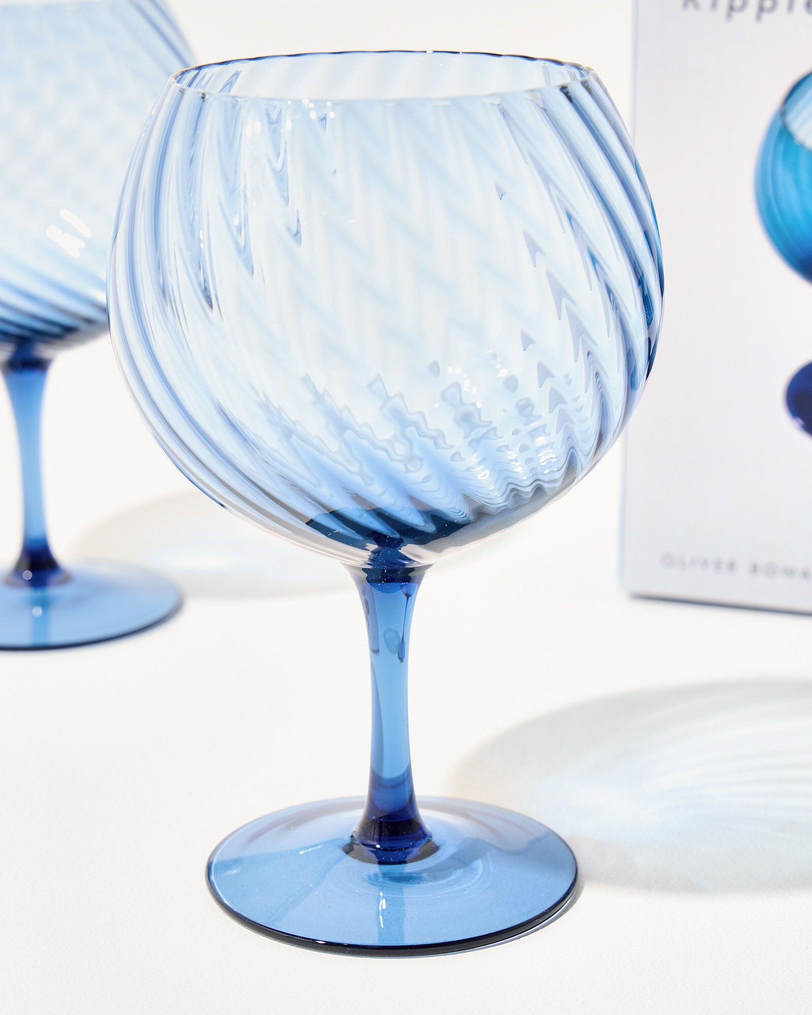 This pair of blue gin glasses arrives in a custom gift box for effortless gifting, and each glass features a large round bowl with a twisted rib pattern, and slim, fluted stem. An ideal gift for gin lovers or to add to your ribbed glassware collection, decorate your summer dining table with these gin glasses for a colourful twist, to serve drinks to your guests in style.
