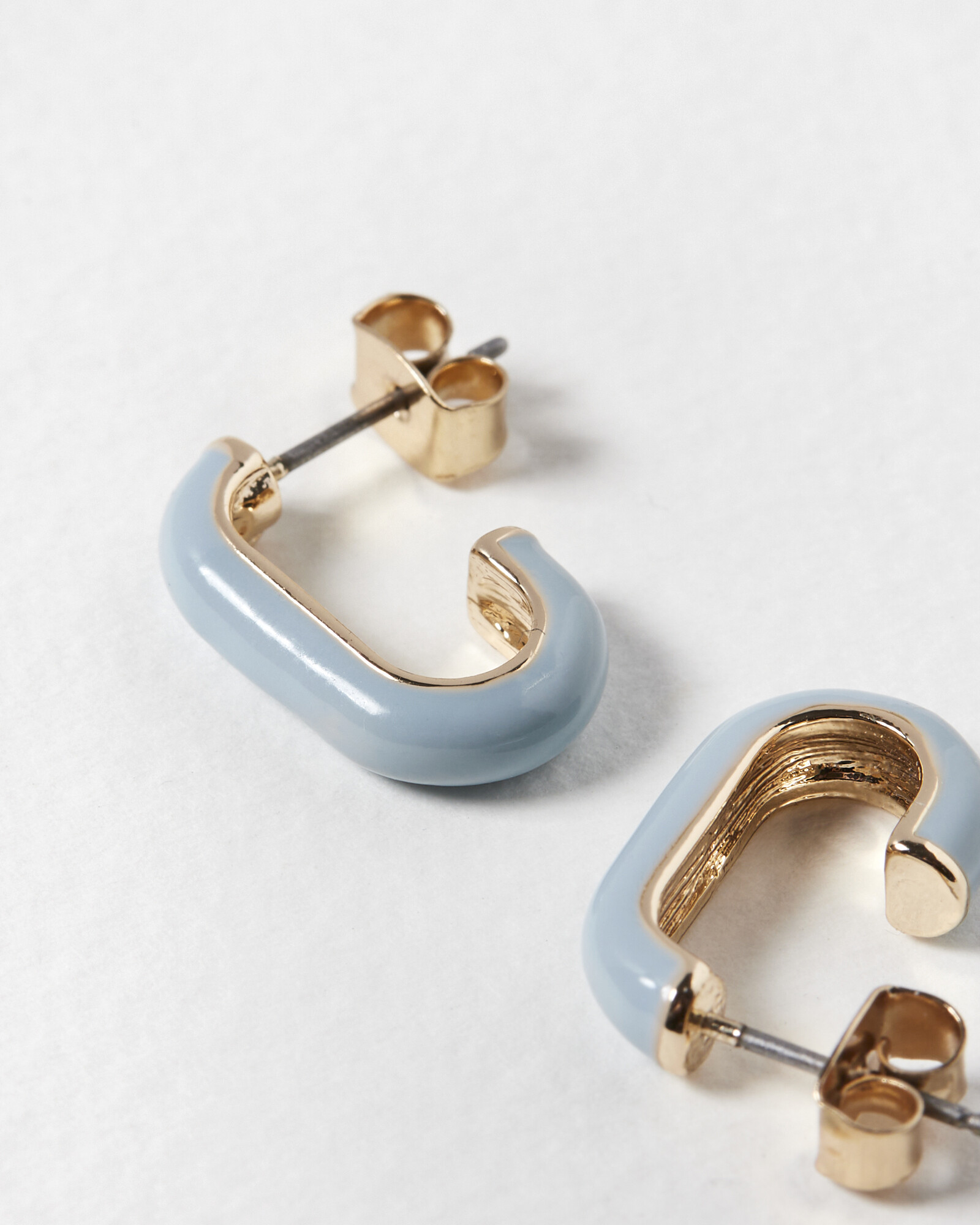 In an oval silhouette, these sophisticated yet statement hoop earrings have golden hardware and butterfly back fastenings.