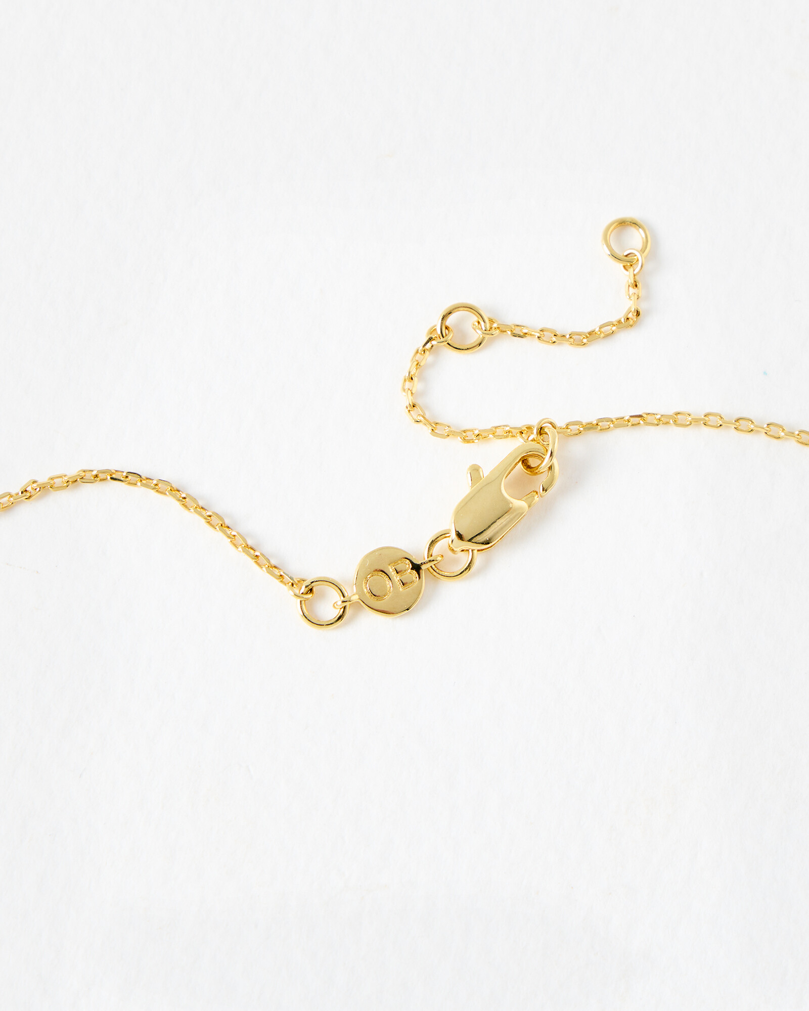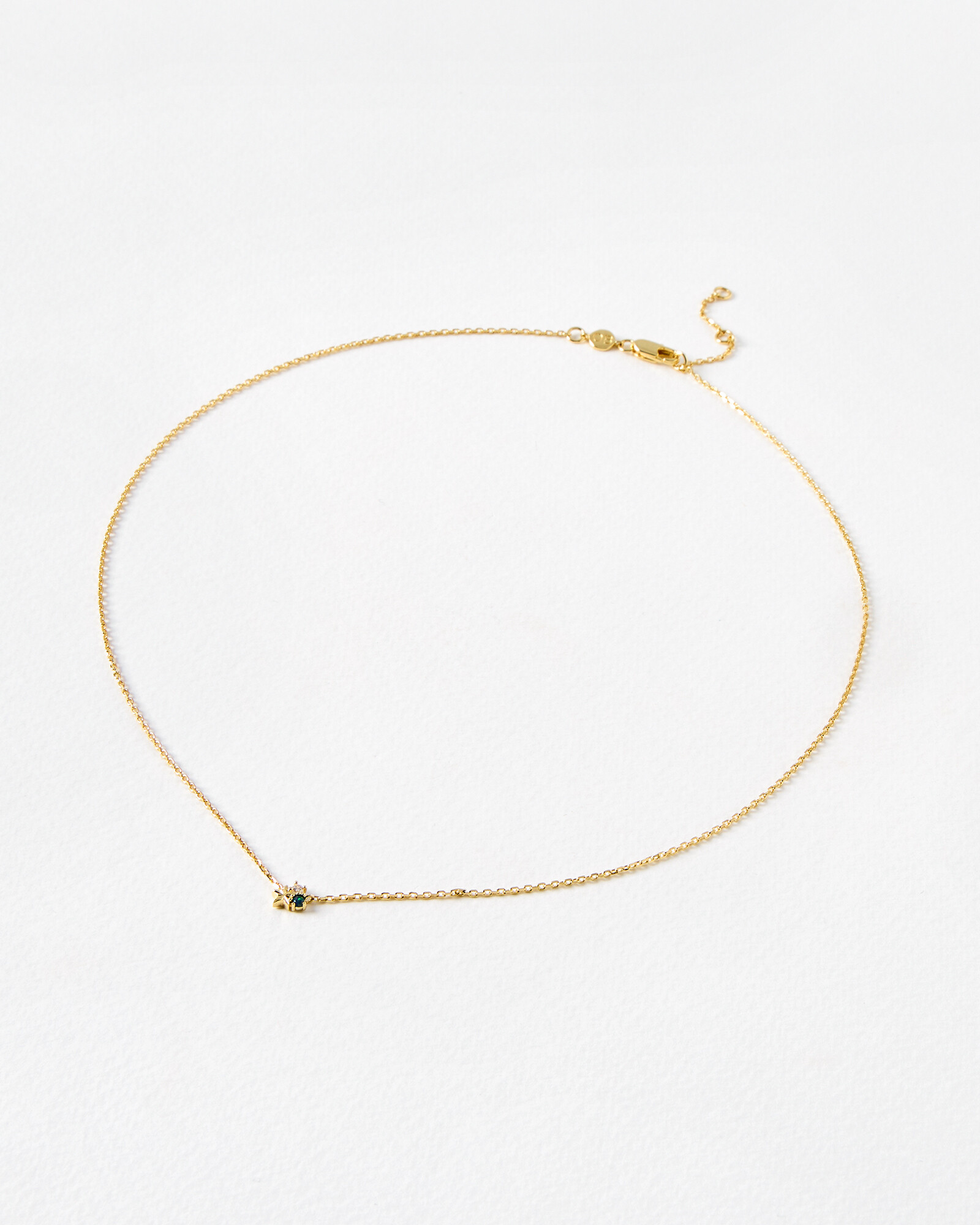 Gold plated necklace with a simple chain and adjustable lobster clasp, featuring a tiny engraved star and green stone cluster. Pair with the matching Danica earrings and bracelet to complete the look.