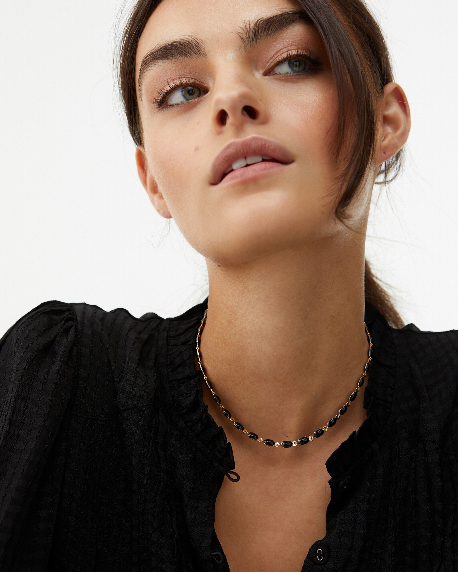 Style: Chain necklaceDesign: Linked oval shapes with black enamel finish