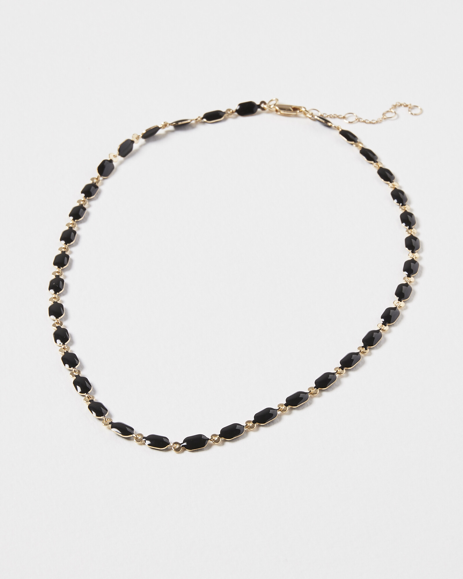 Enamel coated beads in a black finish are connected by gold-toned links in this statement chain necklace, completed with an adjustable length and lobster clasp fastening.