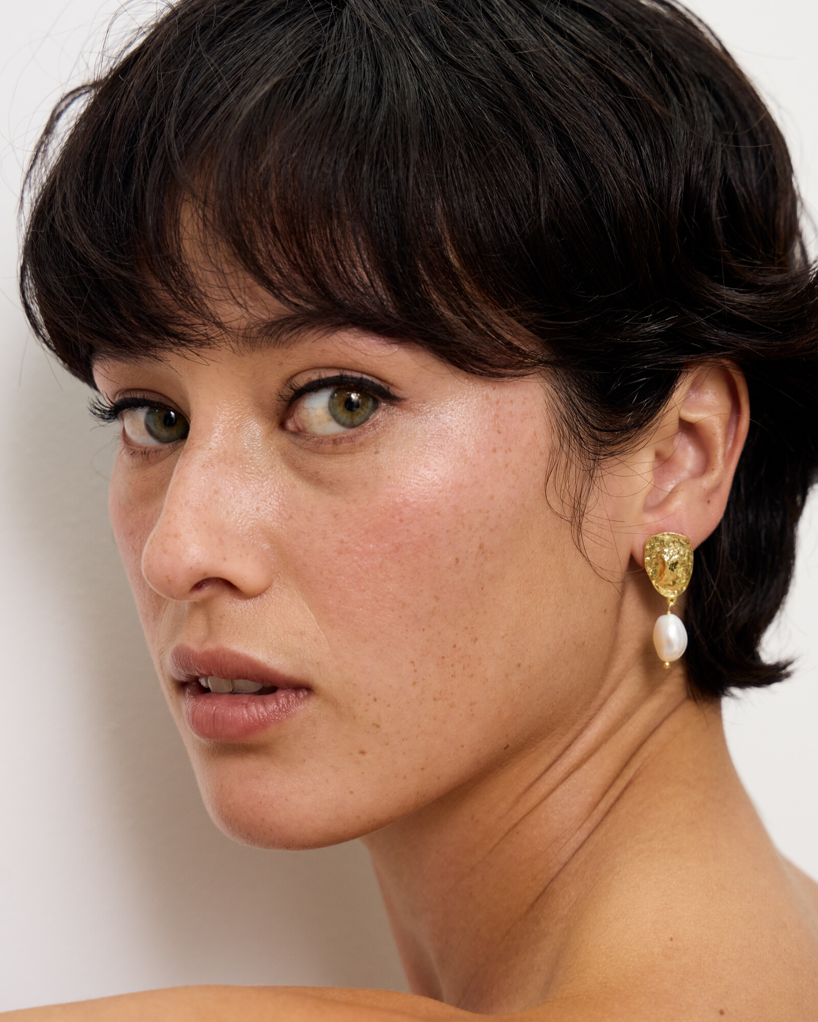 Home | Jewellery | Earrings | Drop Earrings | Perola Gold Plated Molten Freshwater Pearl Drop Earrings