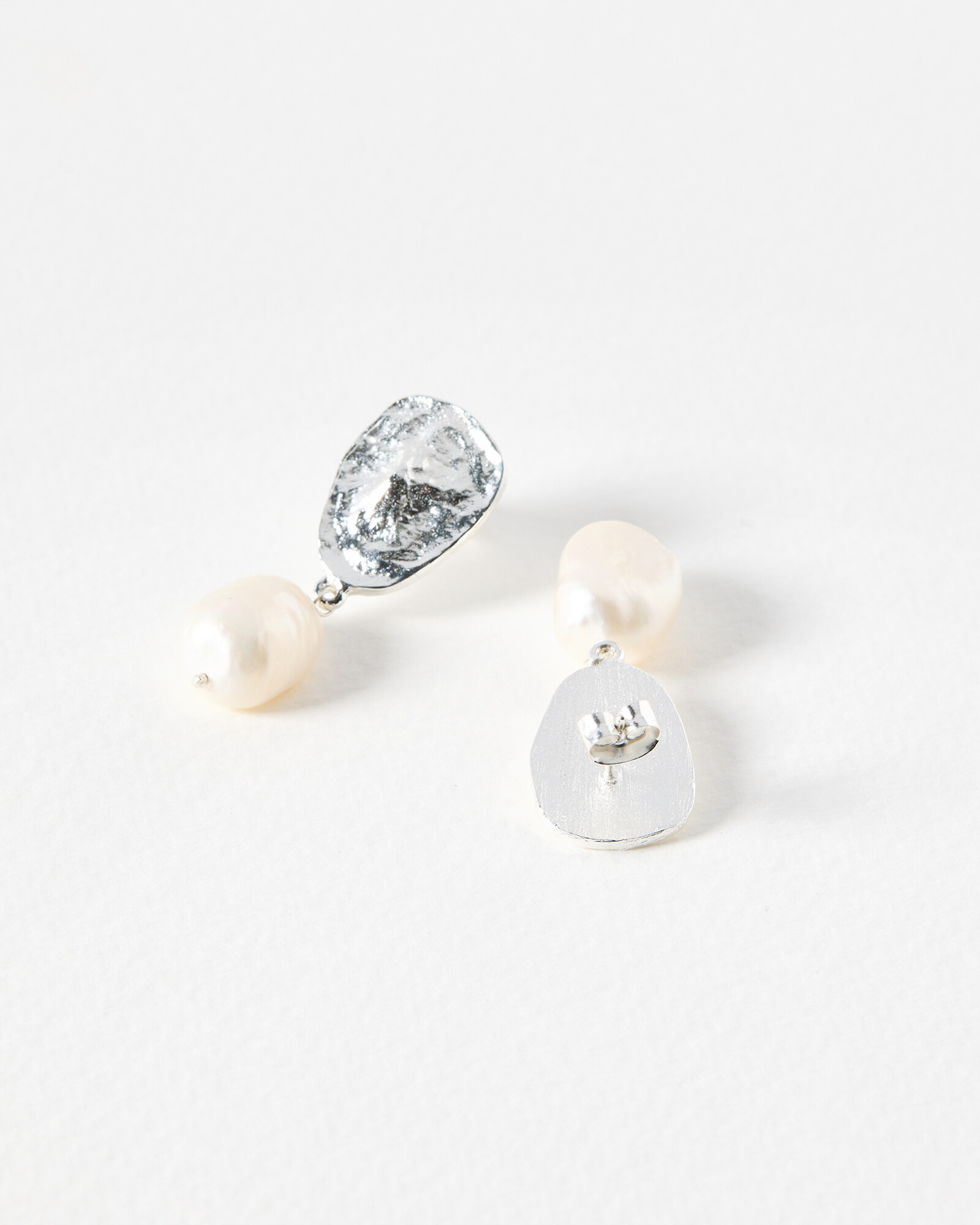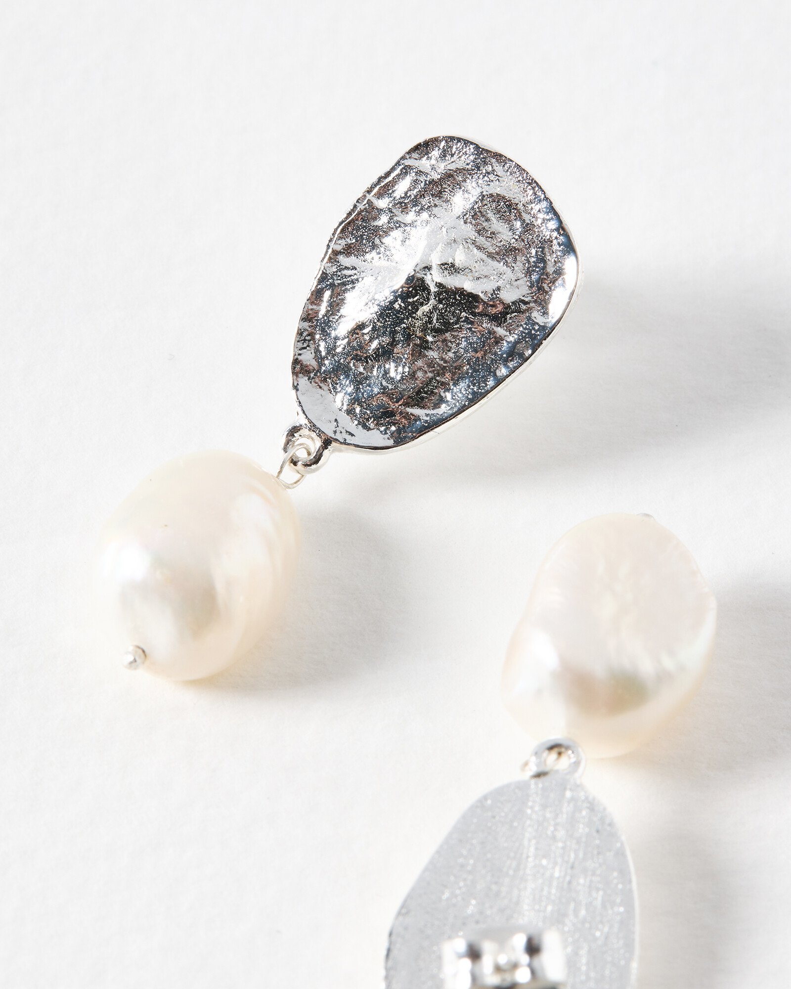 Perola Silver Plated Molten Freshwater Pearl Drop Earrings