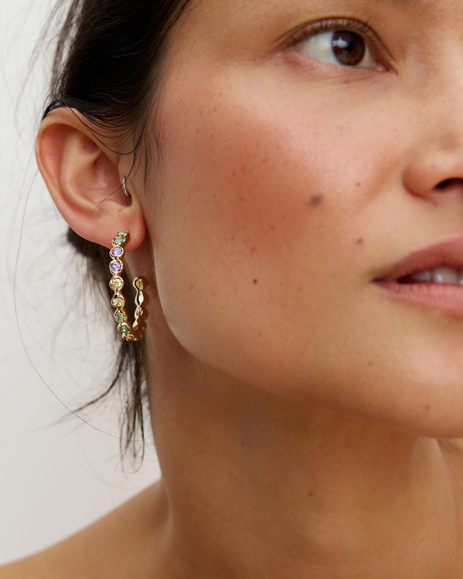 Skye Gold Tone Rainbow Stone Large Hoop Earrings