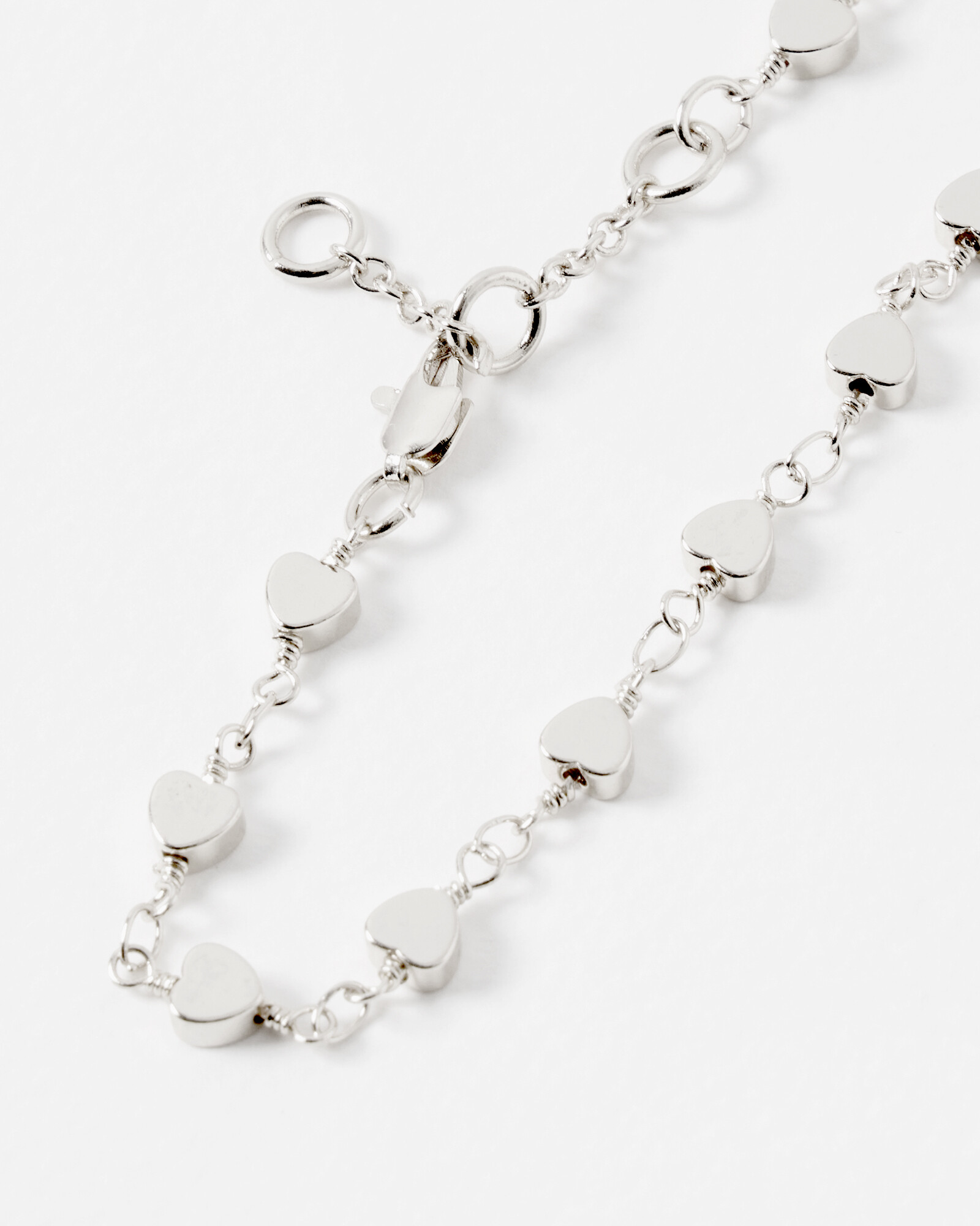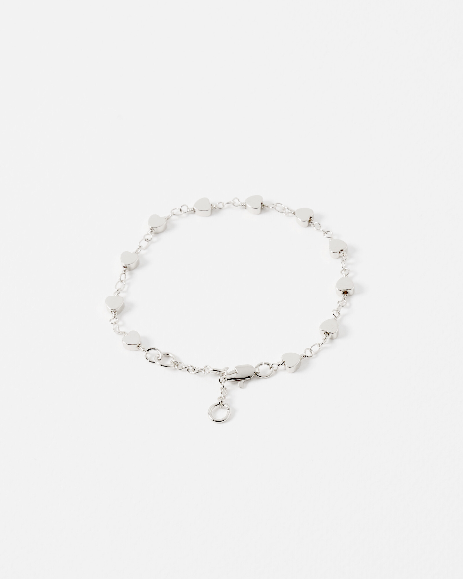 Silver-toned chain bracelet featuring tiny silver heart charm links and an adjustable lobster clasp for comfortable wear. Style with the matching Taurus heart charm necklace, or mix and match with other silver chain bracelets for a layered look.
