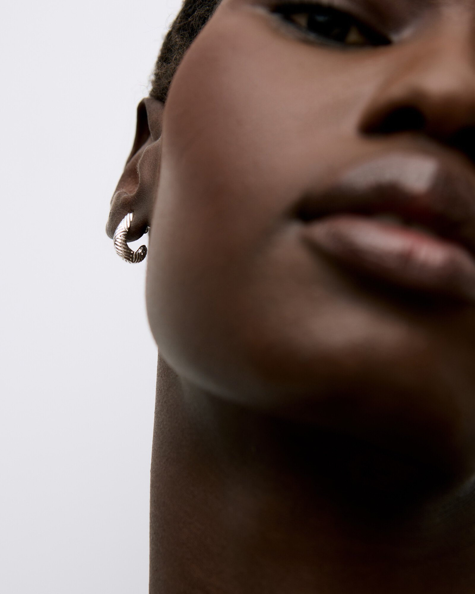 Zia Geometric Lines Silver Plated Hoop Earrings