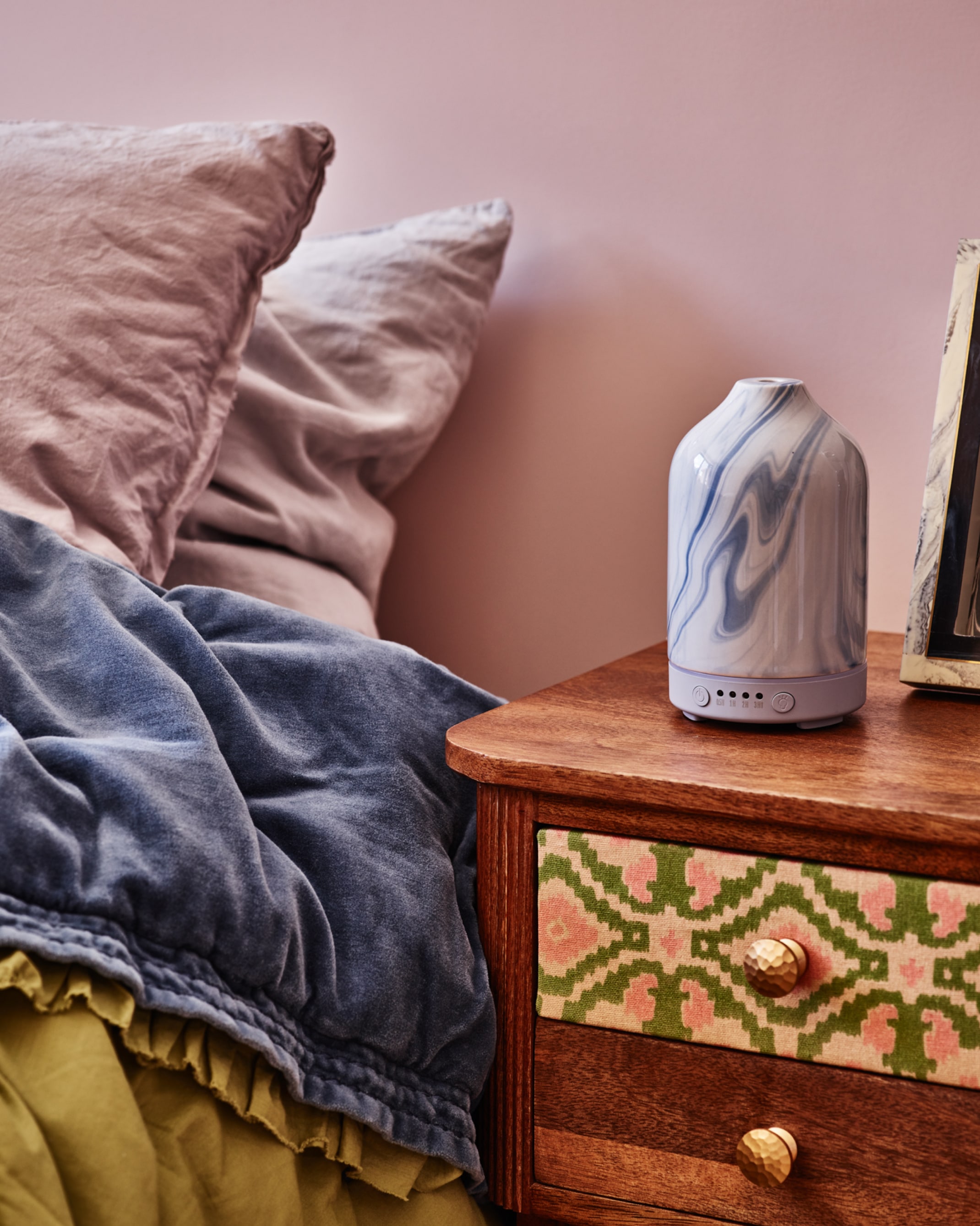 Electric aroma diffusers can help create a calm, soothing, uplifting or cheerful ambience by diffusing fragrances into your room of choice. You can choose to fill your diffuser with essential oils, some of which are thought to help with relaxation, for an at-home aromatherapy experience.