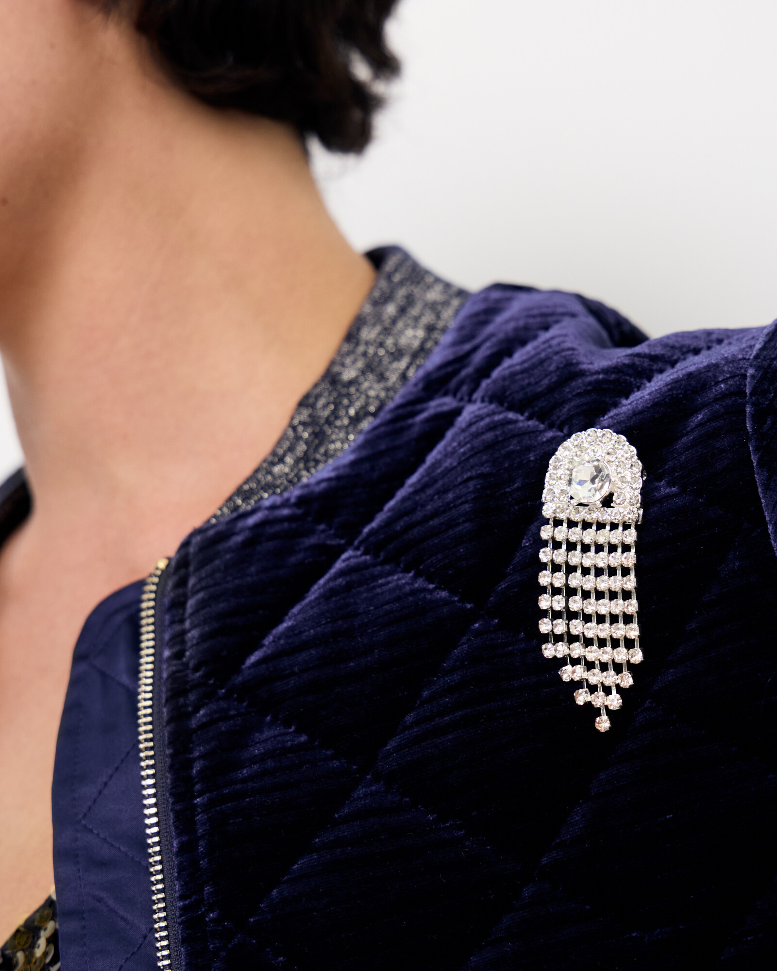 Alemene Stone Tassel Silver Tone Drop Brooch