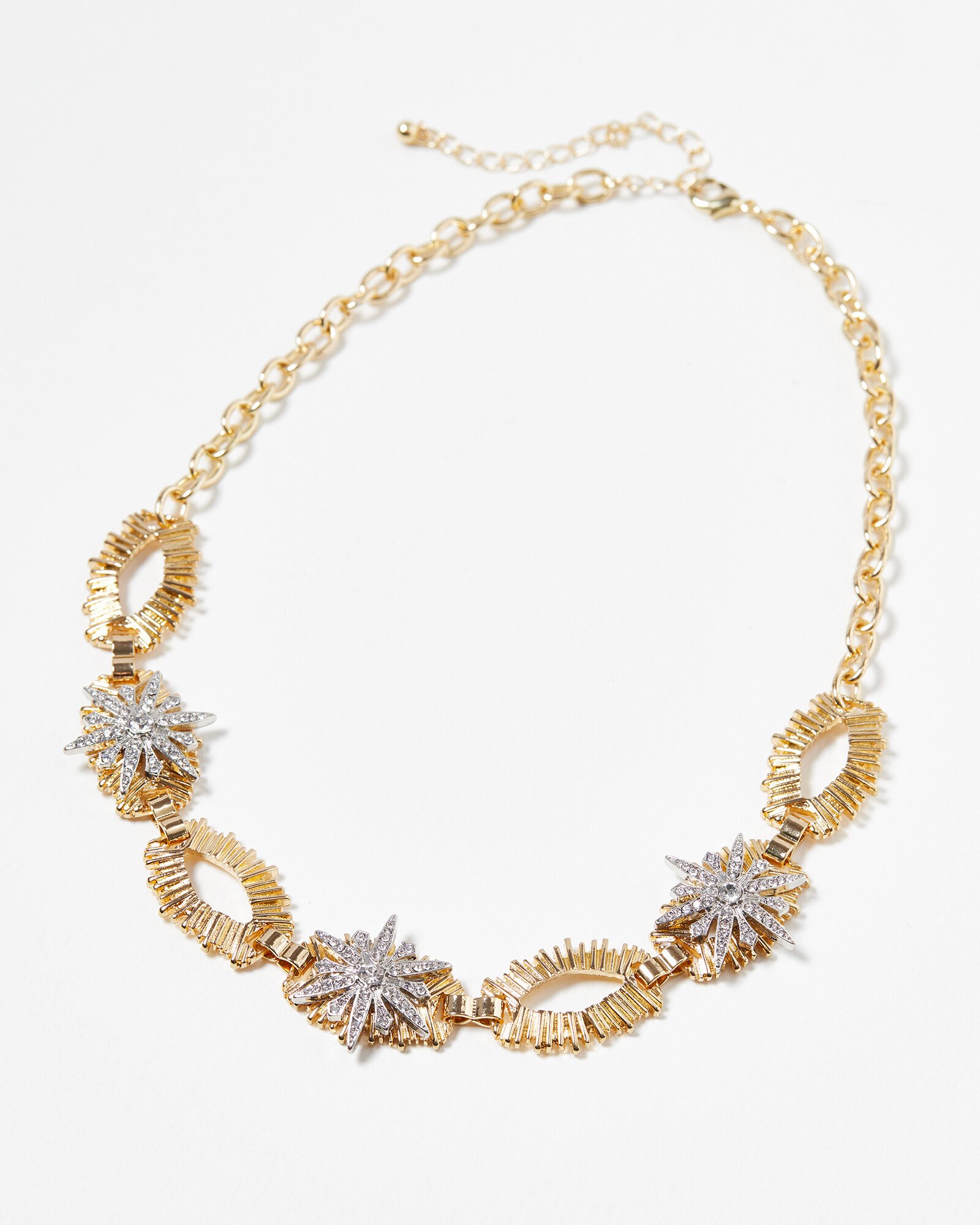 Arpina Star & Textured Oval Links Gold Tone Statement Collar Necklace