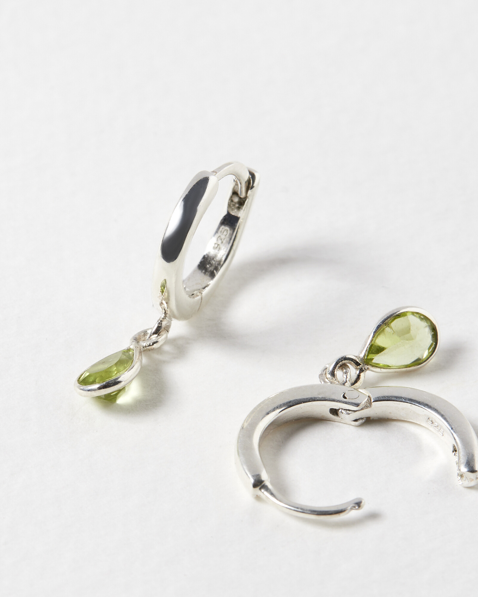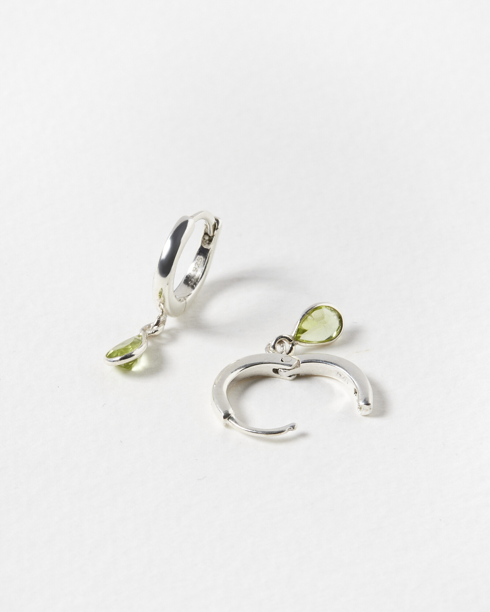 Auden Tiny Teardrop Peridot & Silver Huggie Earrings
