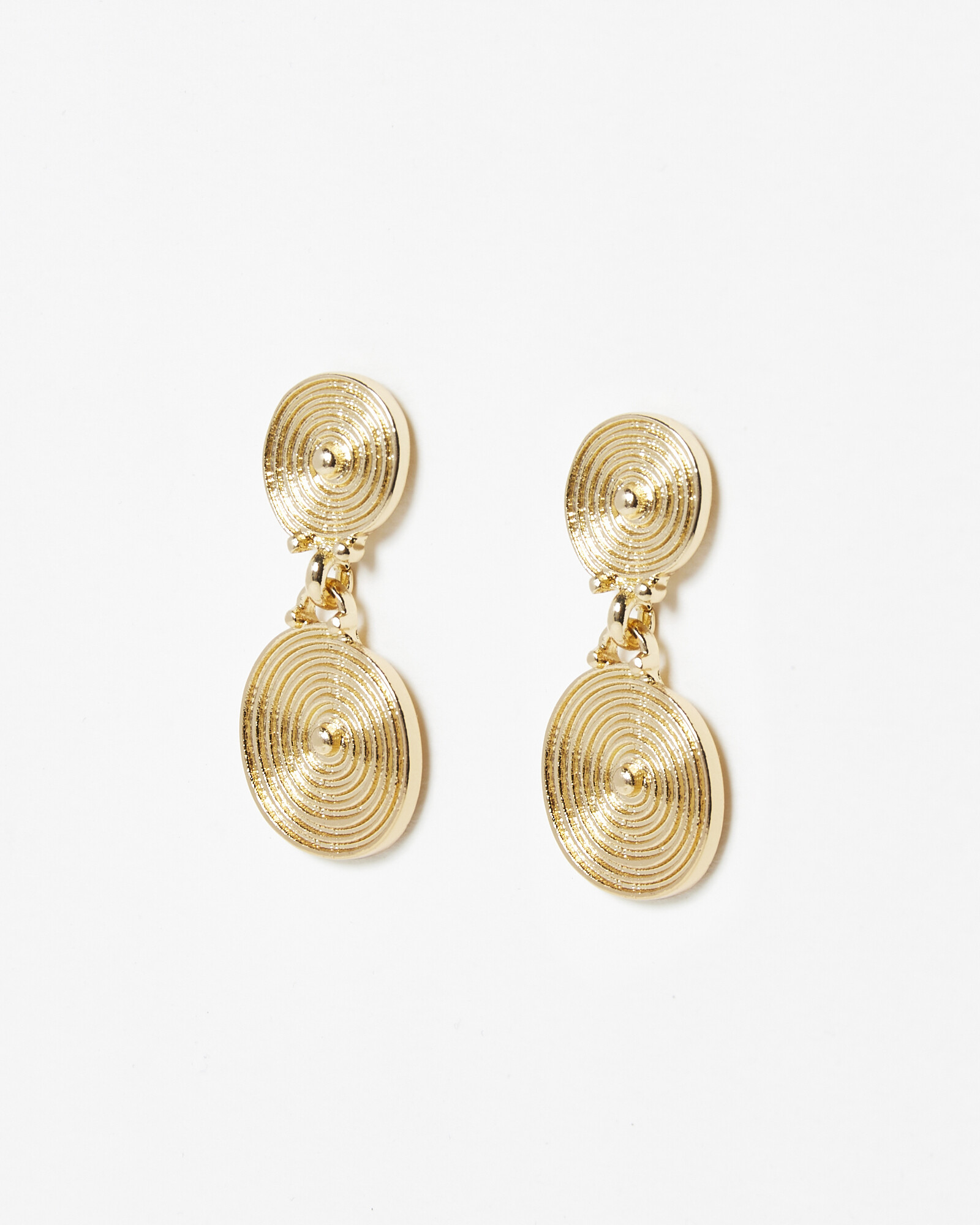 Deniz Circular Double Disc Gold Tone Drop Earrings