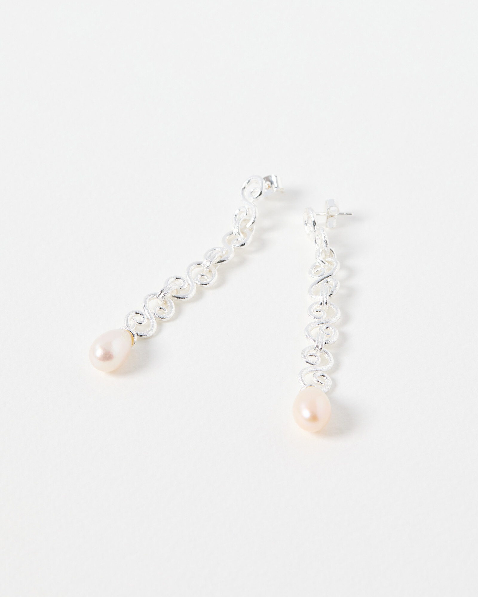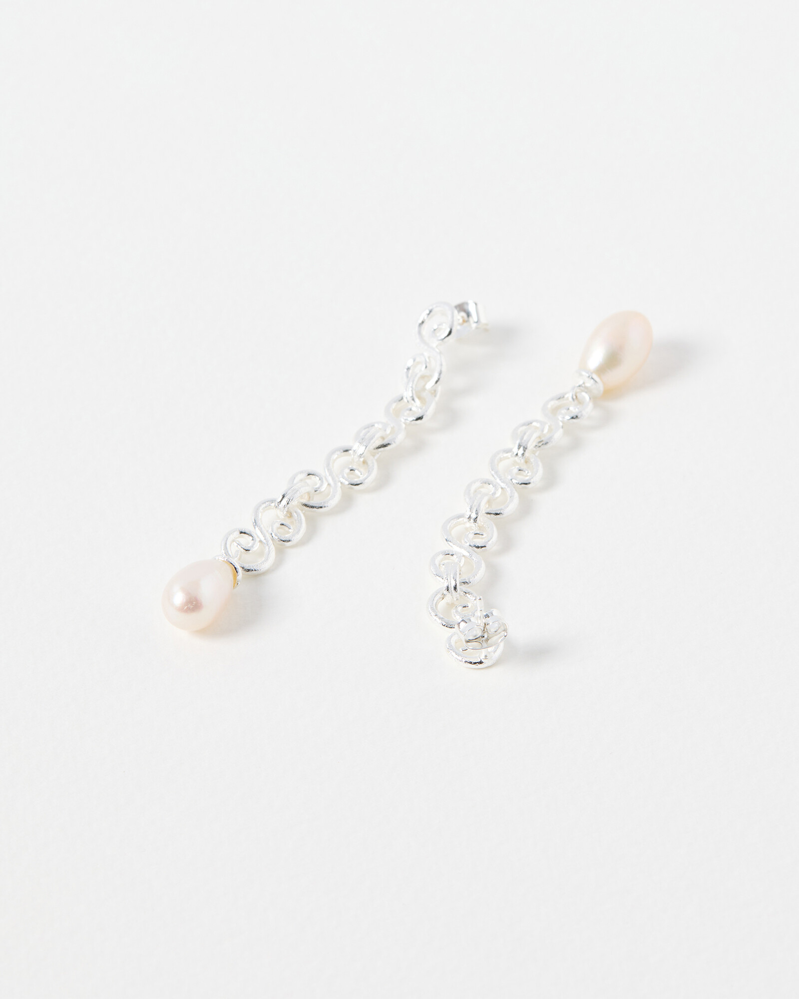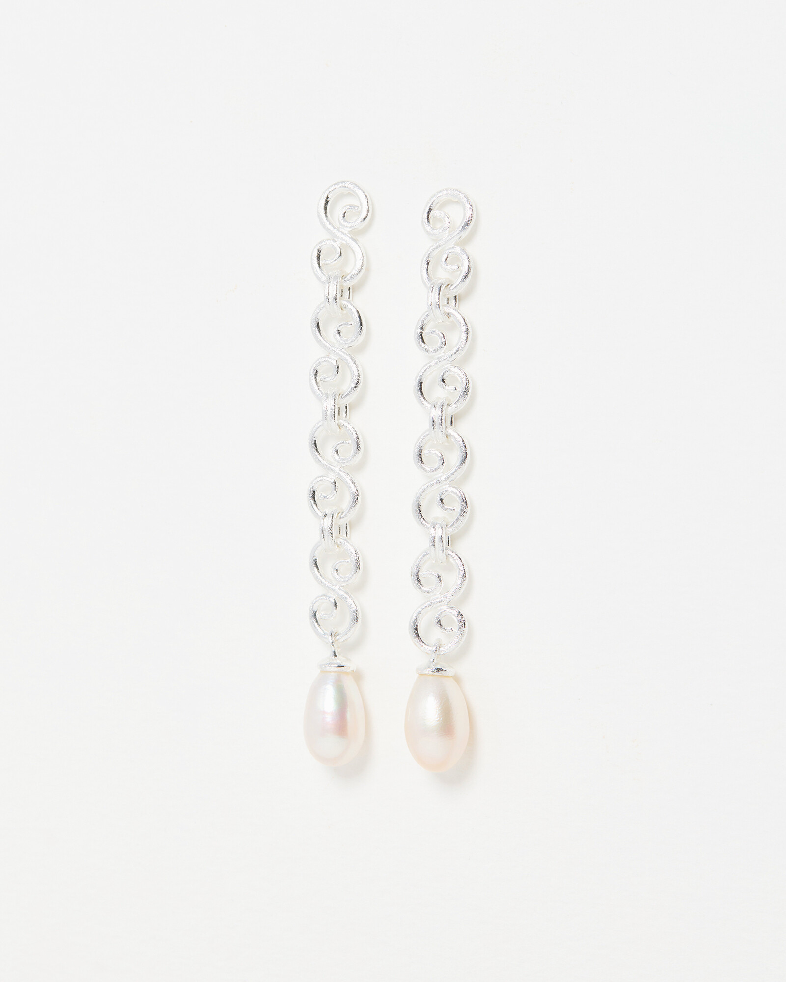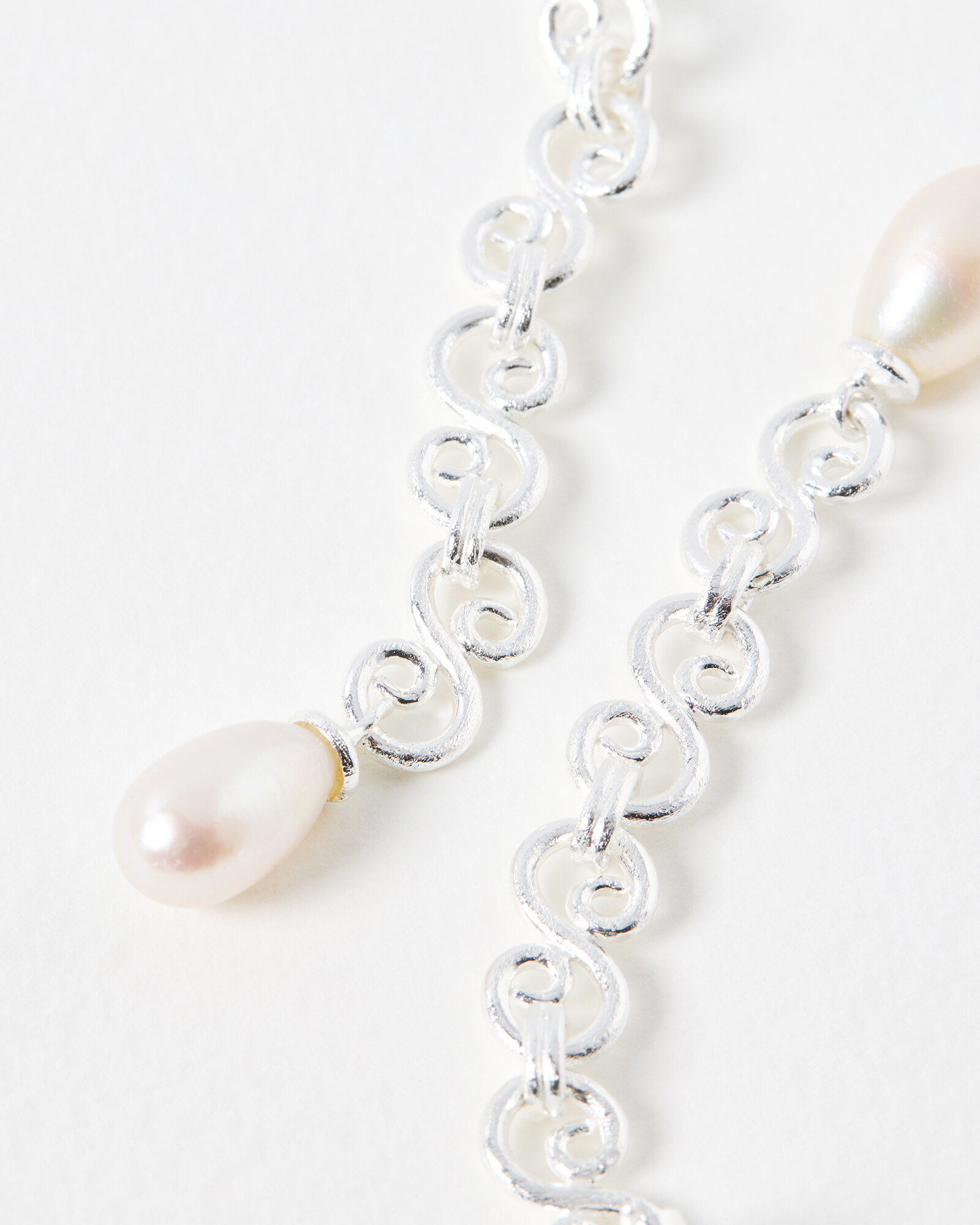 Edith Silver Plated Scroll Chain & Freshwater Pearl Drop Earrings