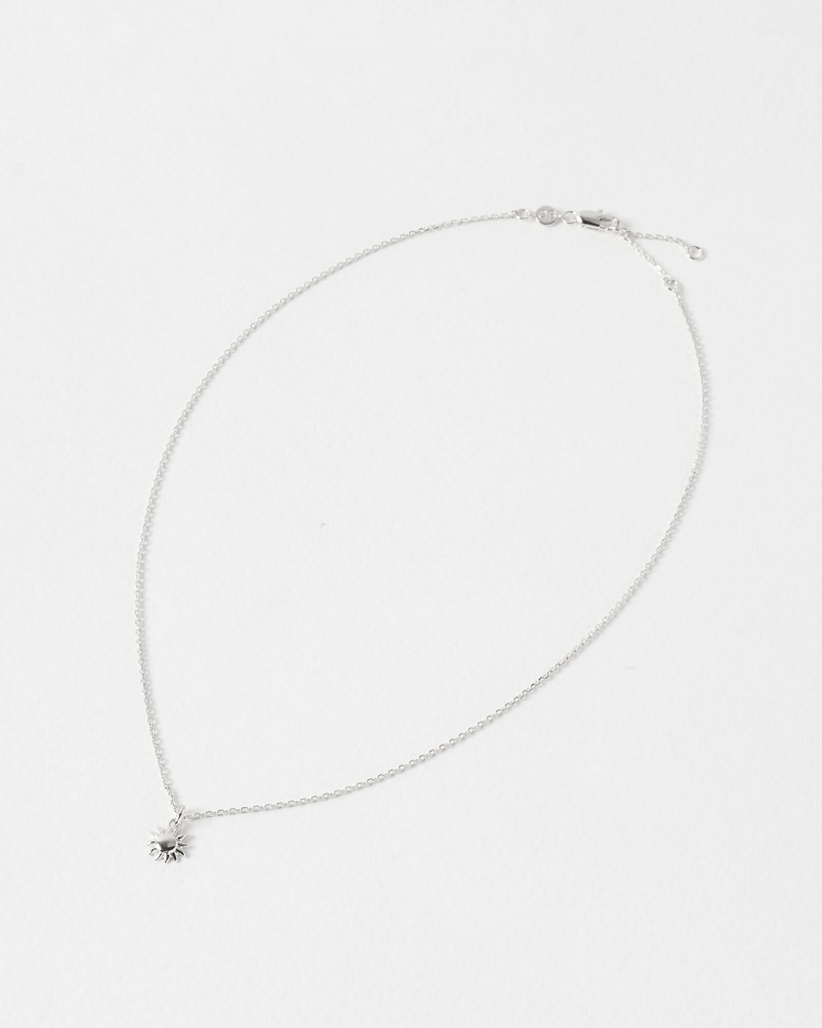 Sterling silver pendant necklace featuring an adjustable fine rolo chain and small sun charm. Perfect for everyday summer wear, style with the matching Elio Sun Earrings to complete the set, or layer with a silver chain necklace for a textural look.