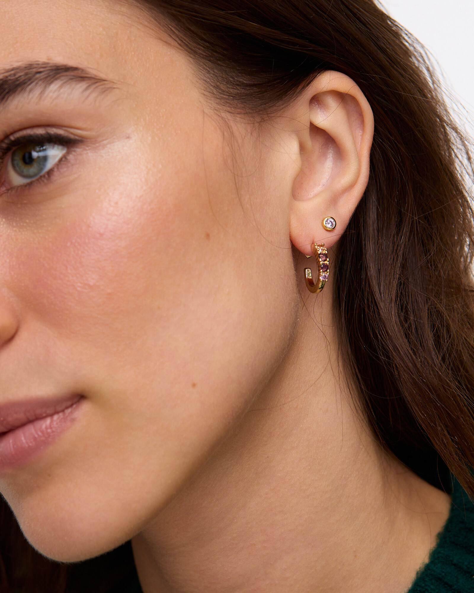 Evie Pink Gem Gold Tone Hoop Earrings