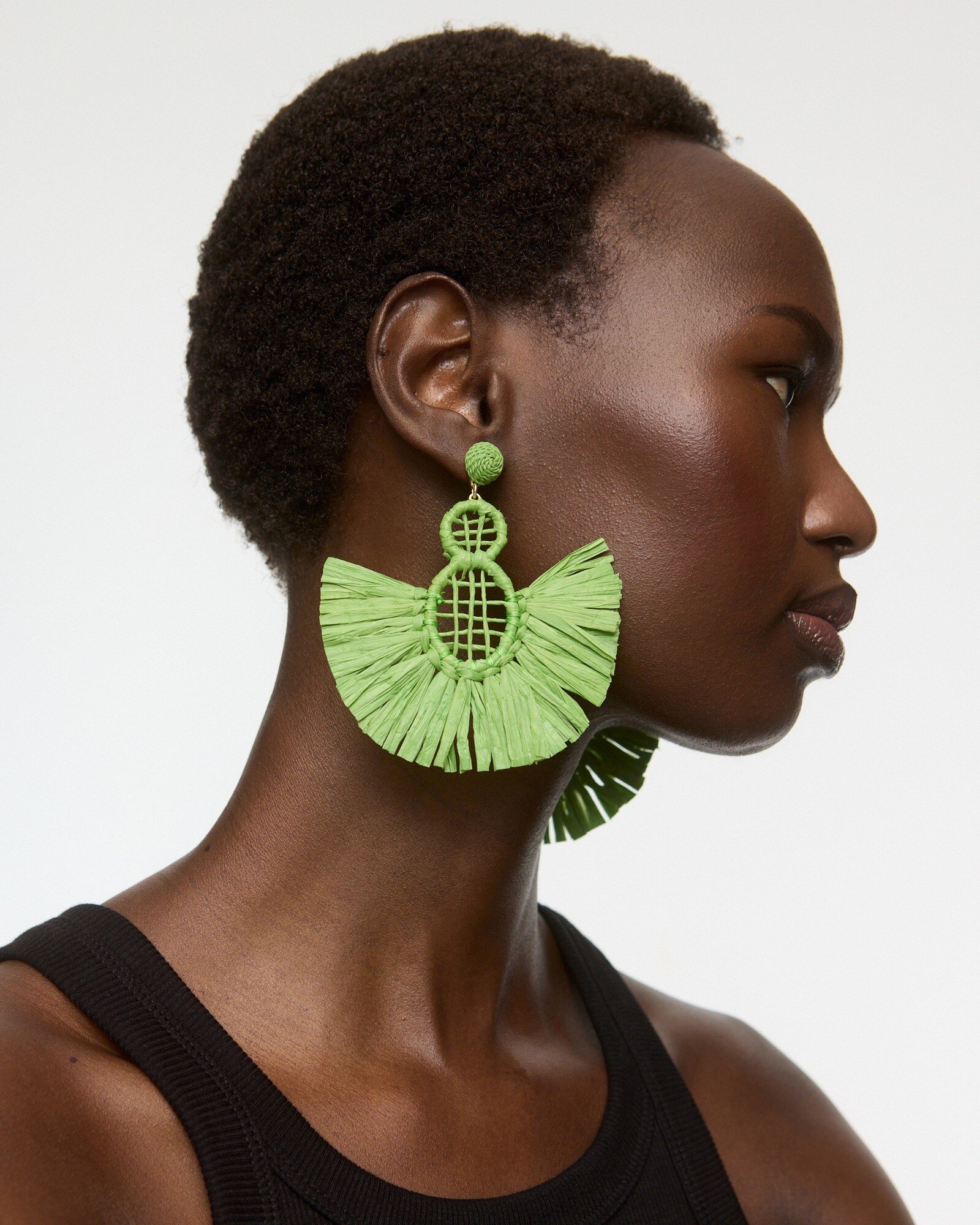 Farley Large Green Raffia Semi-Circle Statement Earrings