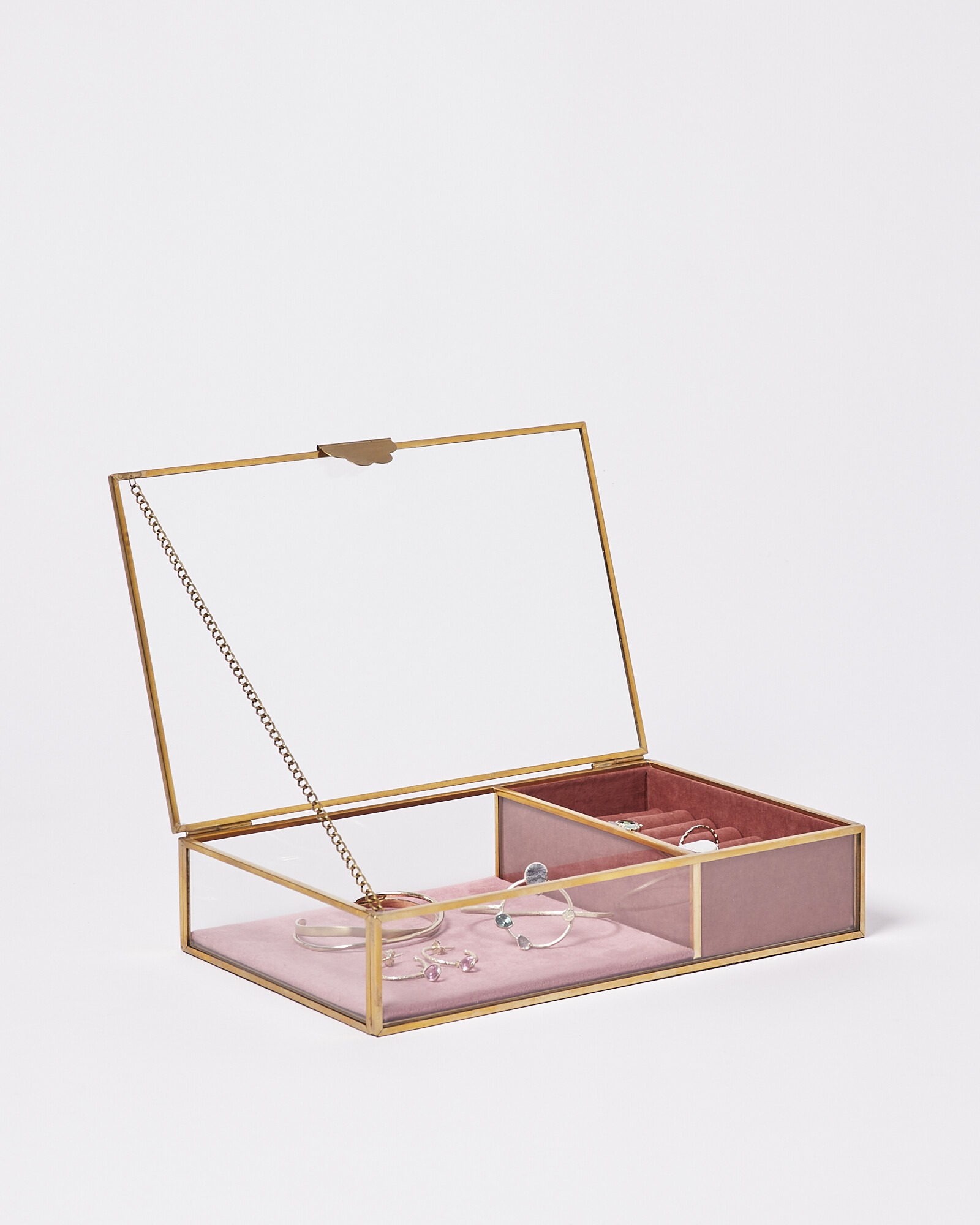 Gold & Glass Pink Velvet Jewellery Box Small