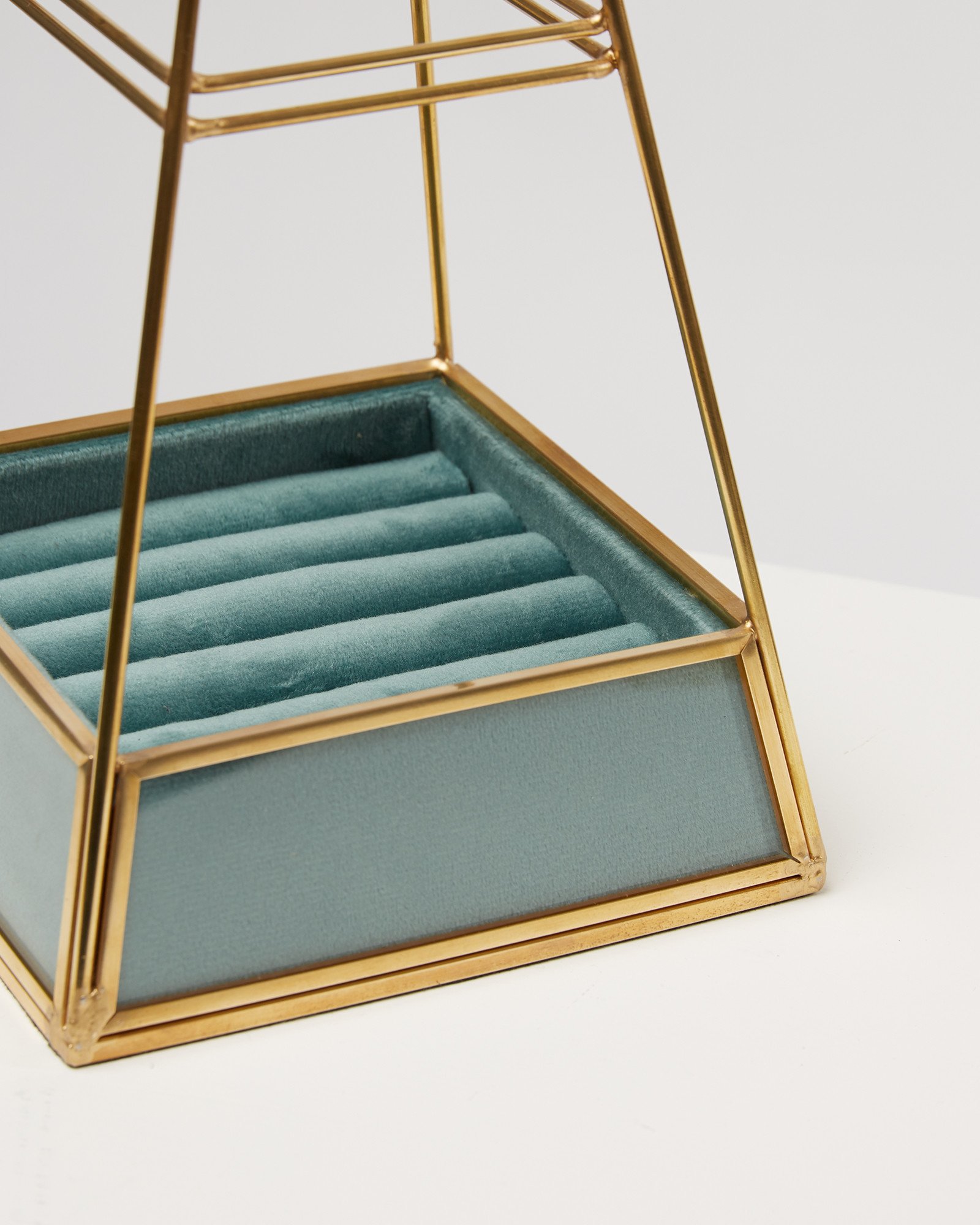 Gold & Glass Pyramid Blue Velvet Jewellery Holder
