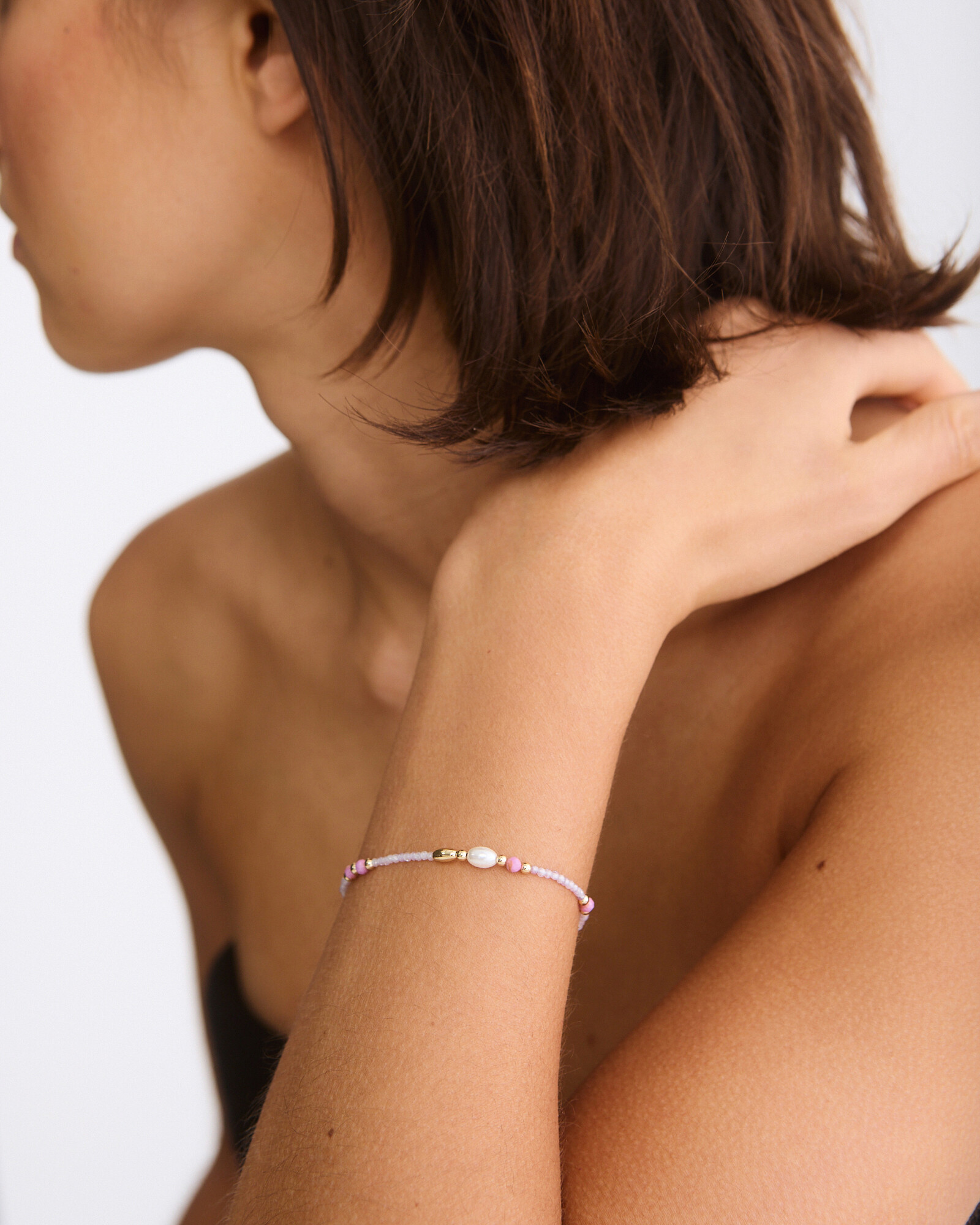 Grace Pink Stone & Faux Pearl Beaded Bracelet