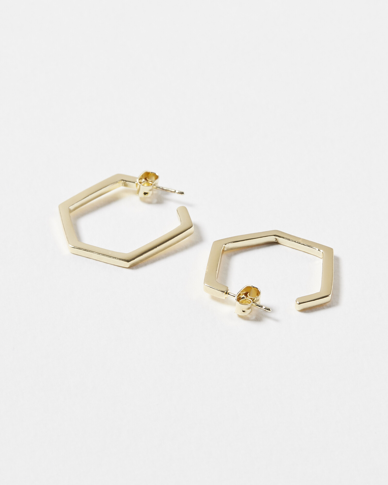 Home | Jewellery | Earrings | Hoop Earrings | Hexagonal Gold Plated Hoop Earrings Mini