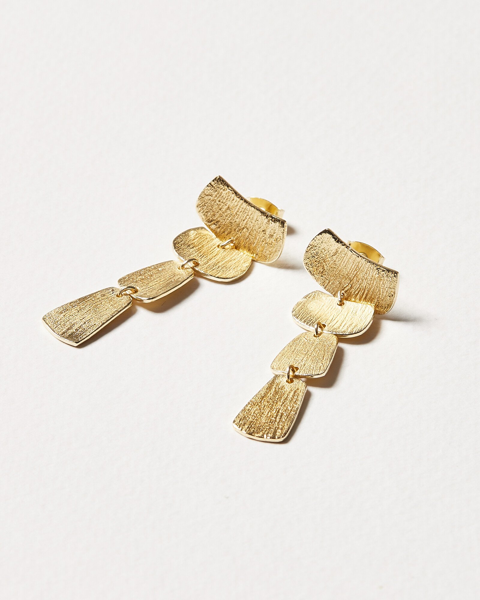 Take your jewellery collection to new levels with these statement drop earrings, finished in a golden tone with a hammered metal design.