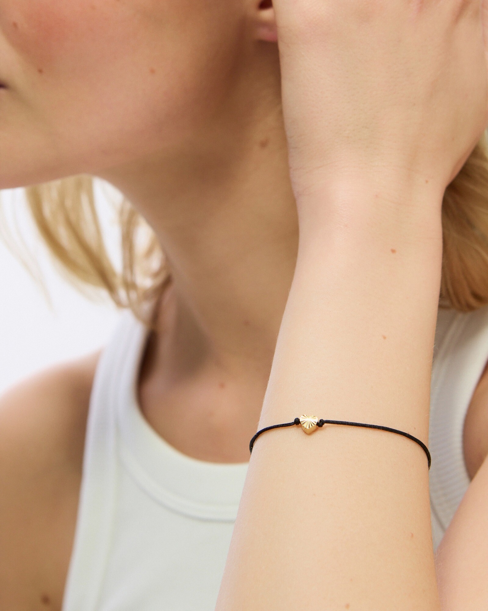 Juju Engraved Heart Charm Gold Plated Rope Bracelet
