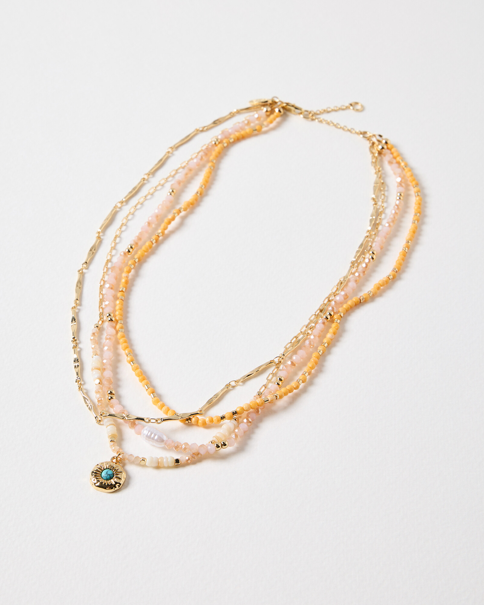 Leanne Glass Bead & Stone Layered Pendant Necklace